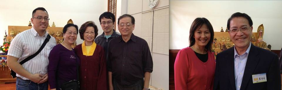 今日貴賓「中華民國行政院北美事務協調委員會」廖秘書長東周伉儷也一起參加「阿彌陀佛護摩大法會」。朱鍾勛醫師一家與蓮香師母歡喜合影。