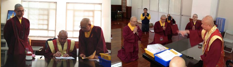 負責翻譯的「秀姬師姐」開心地拿著新出爐的師尊法文書供養蓮生法王!讓我們一起為她的發心翻譯,用力鼓掌……