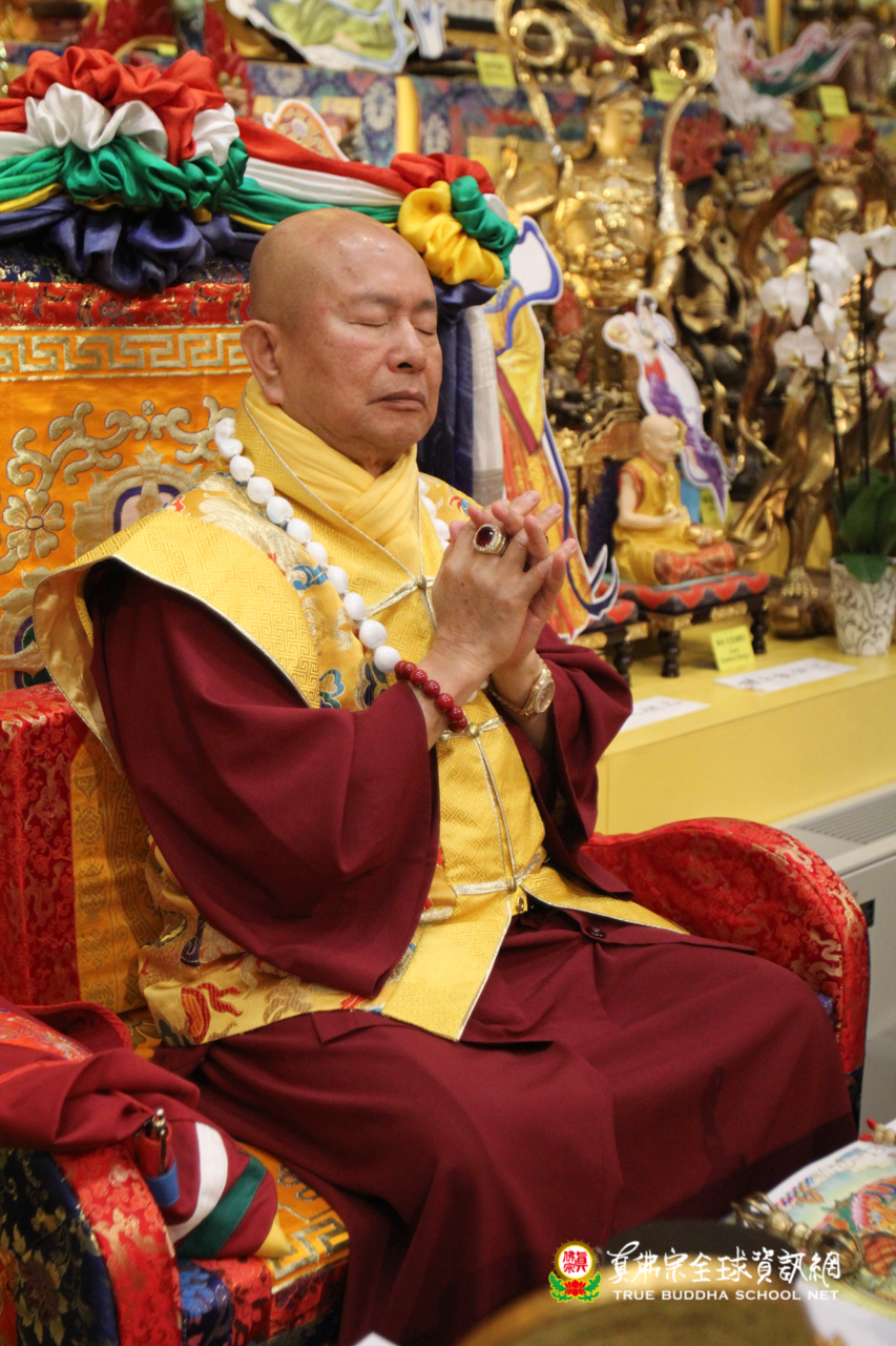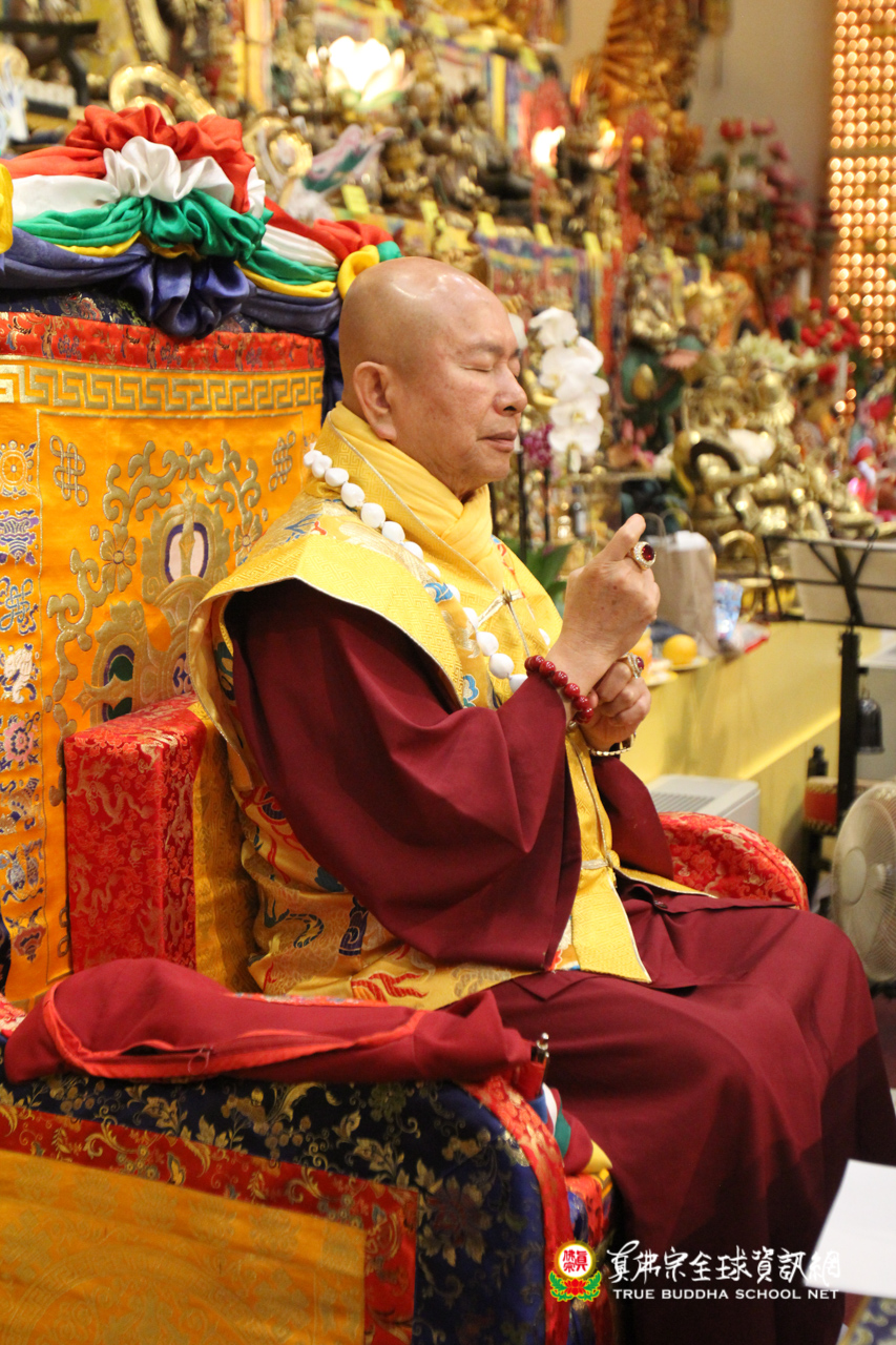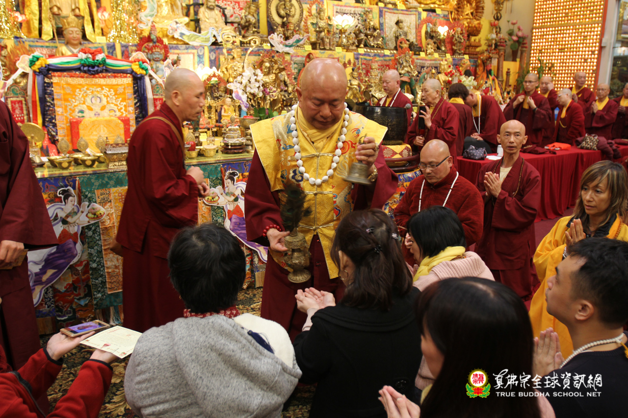 開示結束後,聖尊為大眾賜授皈依灌頂、加持大悲咒水和開光佛像。離開祖廟前,聖尊慈悲為大眾摩頂加持。聖尊是晚的開示,法音繞樑、法味縈繞,所有弟子們至誠感謝聖尊的教導,讓大家能明白無所得、無所失、無所畏懼的自在清明。