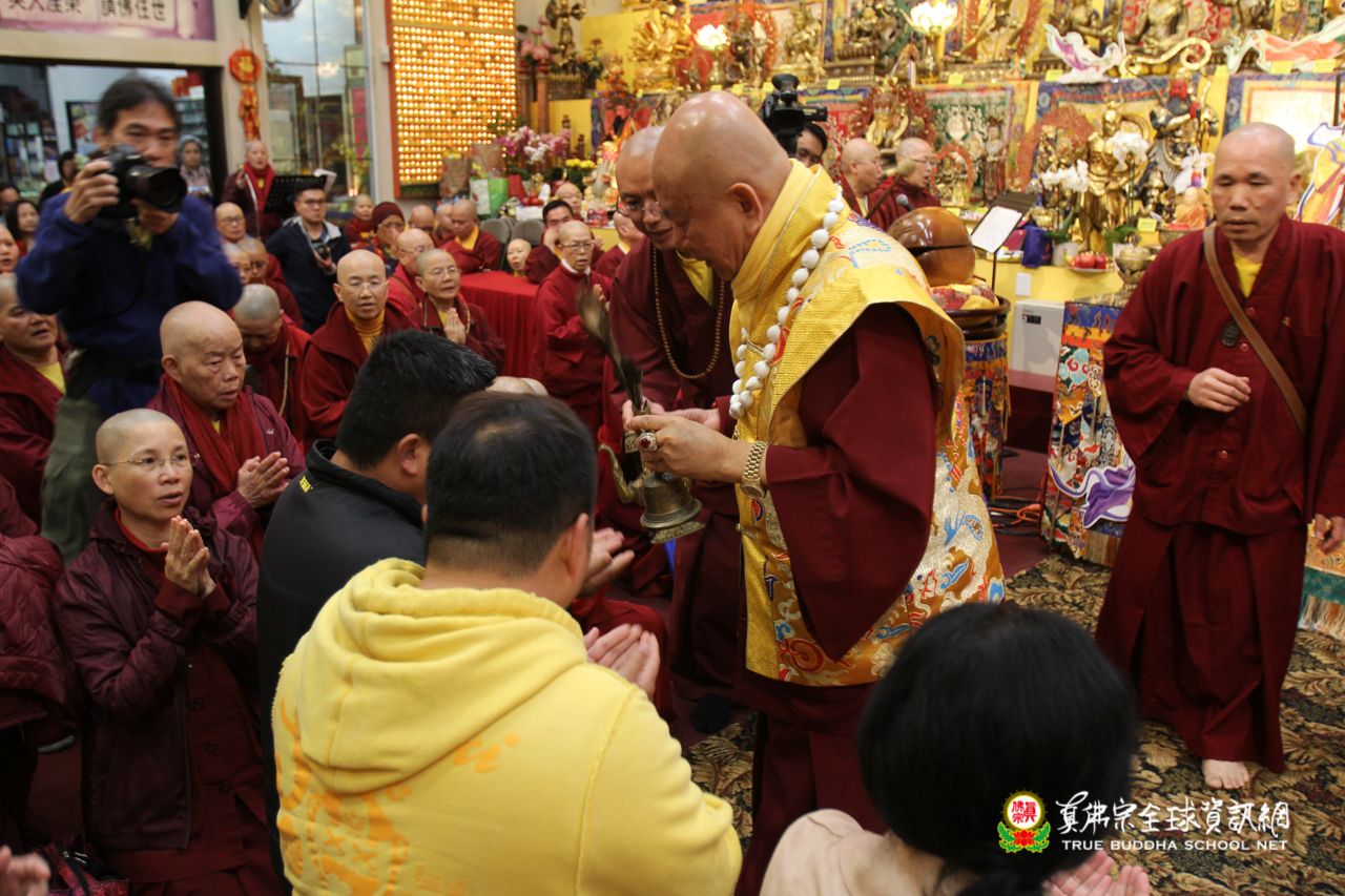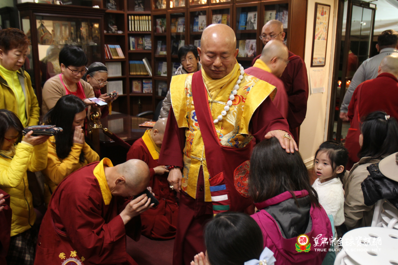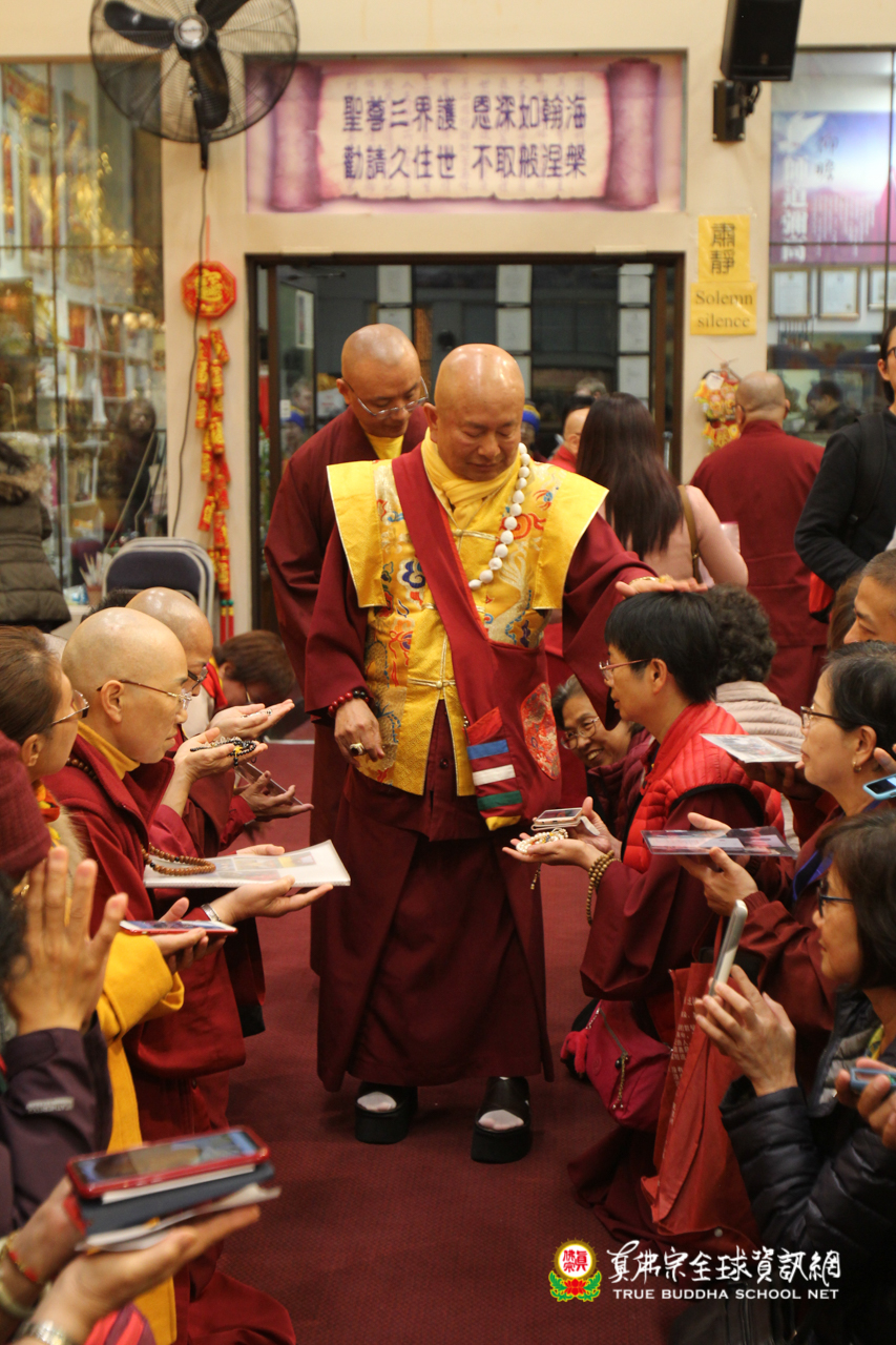 開示結束後,聖尊為大眾賜授皈依灌頂、加持大悲咒水和開光佛像。離開祖廟前,聖尊慈悲為大眾摩頂加持。聖尊是晚的開示,法音繞樑、法味縈繞,所有弟子們至誠感謝聖尊的教導,讓大家能明白無所得、無所失、無所畏懼的自在清明。