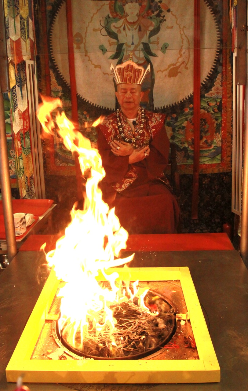 2014年9月21日下午三時,蓮生活佛盧勝彥法王於〈彩虹雷藏寺〉主持「勾財天女護摩法會」暨講授「大圓滿九次第法」。