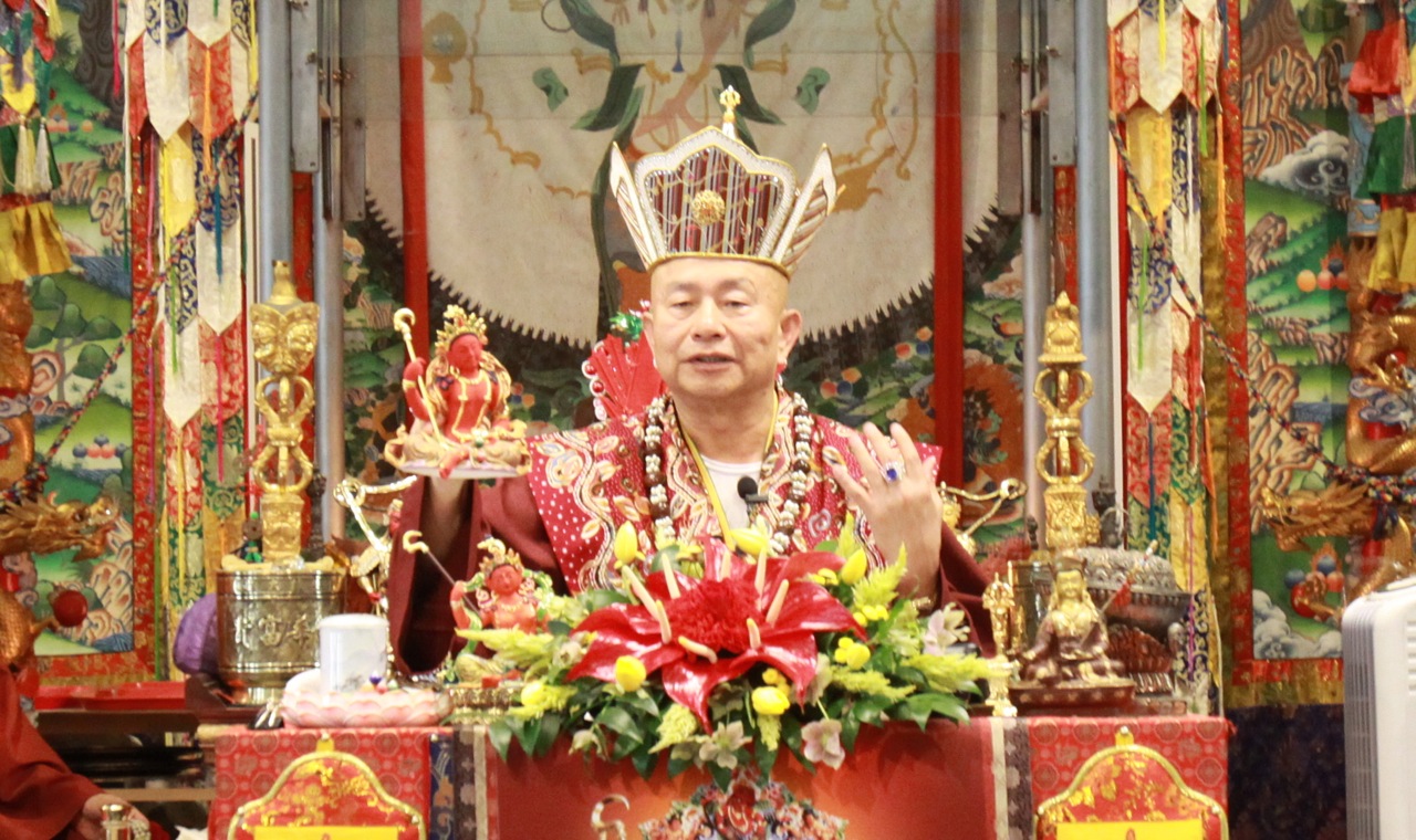 開示完,大眾抱以熱烈掌聲,感恩蓮生法王的寶貴開示,最後,蓮生法王慈悲為大眾賜授「勾財天女法」灌頂,護摩法會圓滿吉祥!