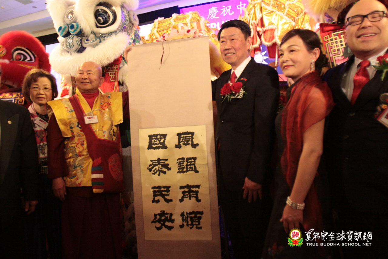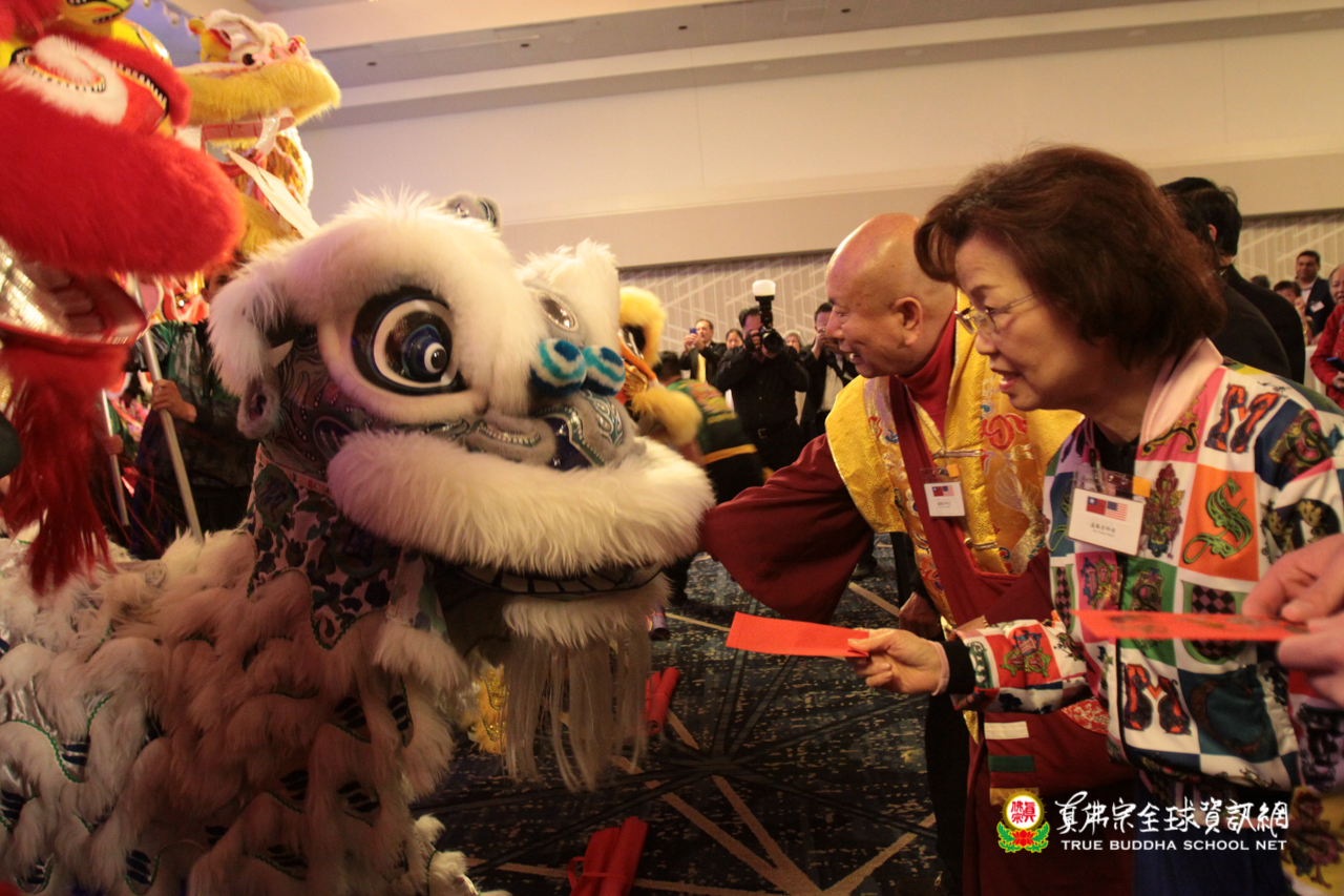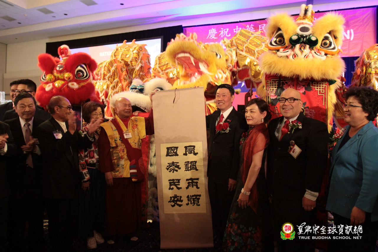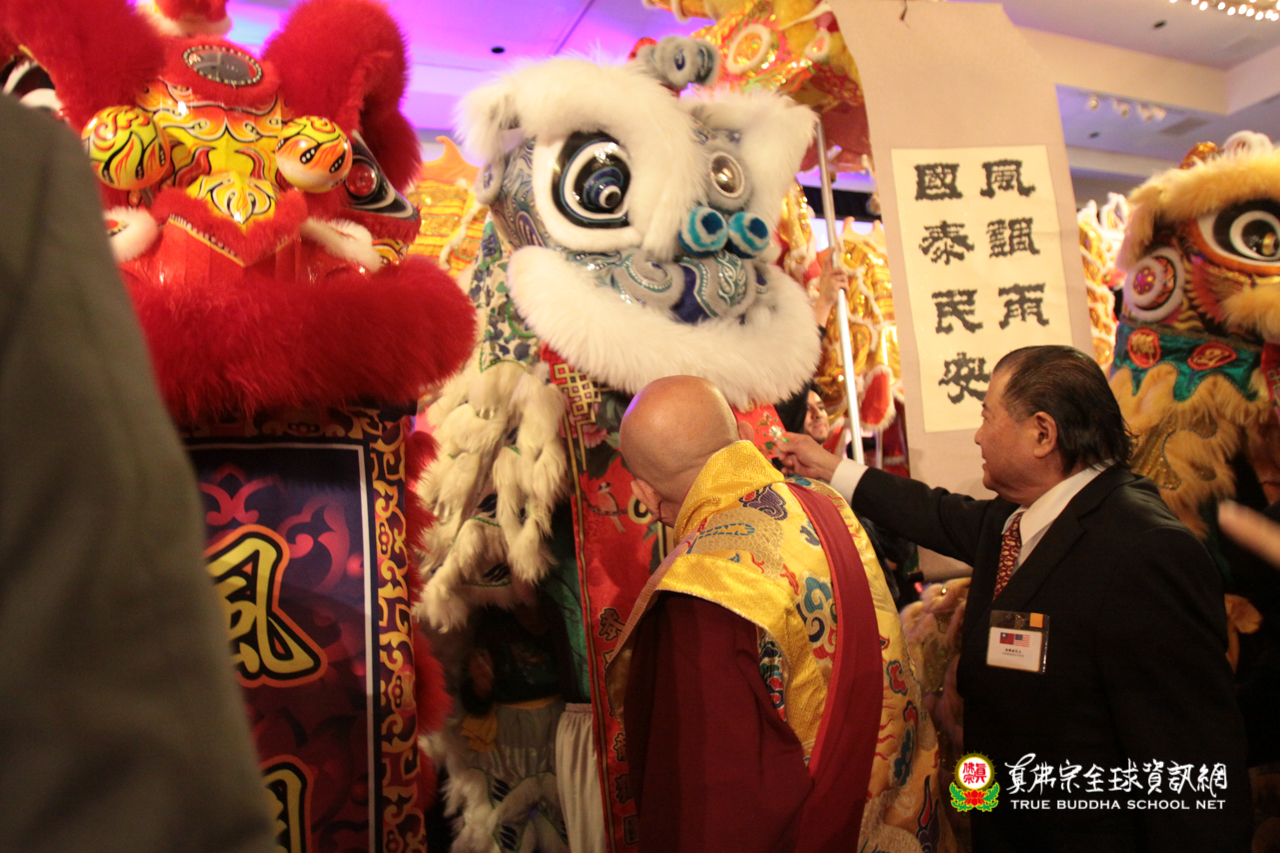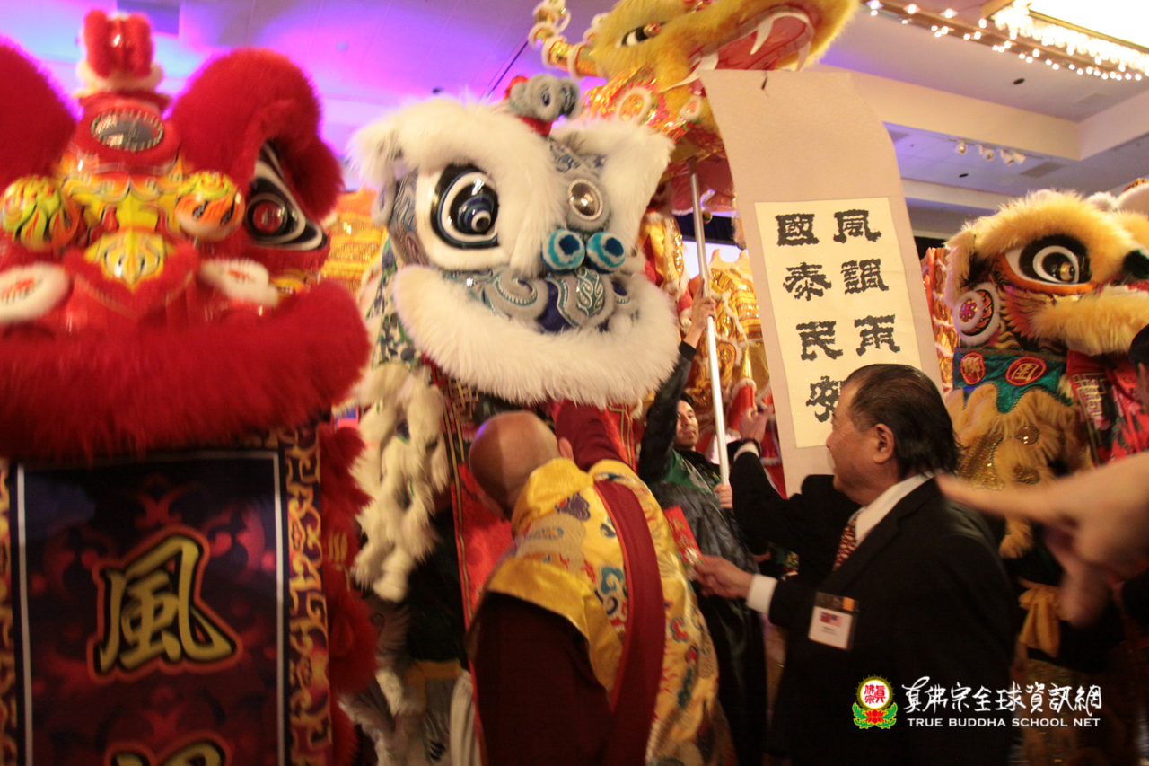首先開場的是熱鬧喜慶的舞龍、舞獅,聖尊蓮生活佛與師母蓮香上師受邀將象徵吉祥的紅包賜福給醒獅團。宴會會場裝飾有美輪美奐的雙十冰雕,主辦單位更是準備了大型的國慶蛋糕,特別邀請聖尊蓮生活佛、師母蓮香上師,與台北經濟文化辦事處處長范國樞先生伉儷以及各界政要一起切蛋糕,大家一齊祈求中華民國國泰民安、風調雨順。