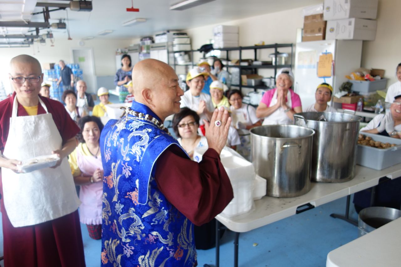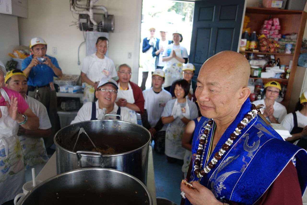用餐前,蓮生活佛還特地到戶外弟子用餐的地方,關心弟子的用餐及問候負責香積組義工們的辛勞,蓮生活佛的慈悲關懷,讓所有弟子心中感到特別溫暖~