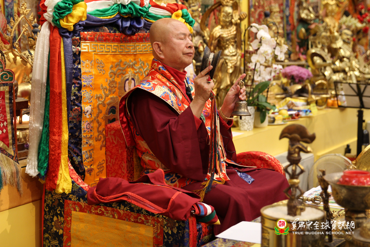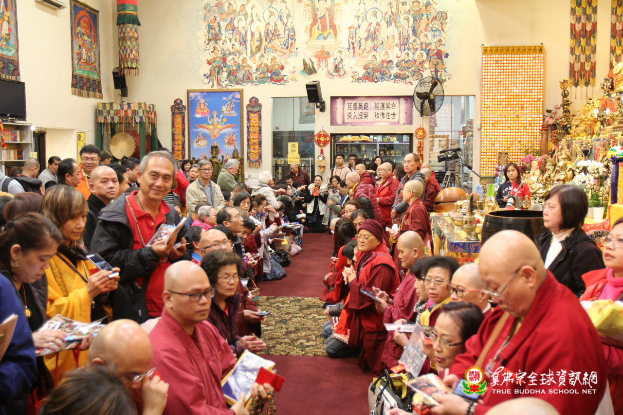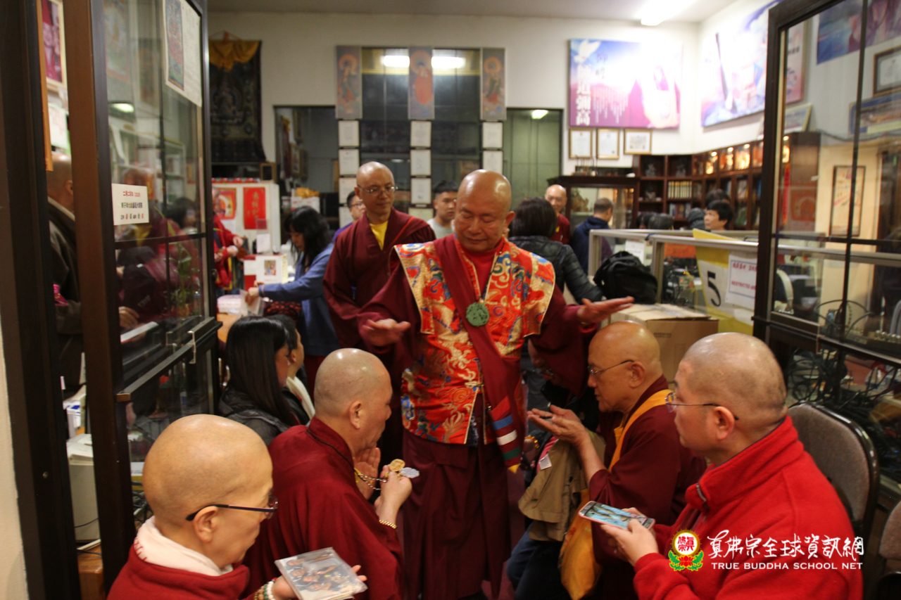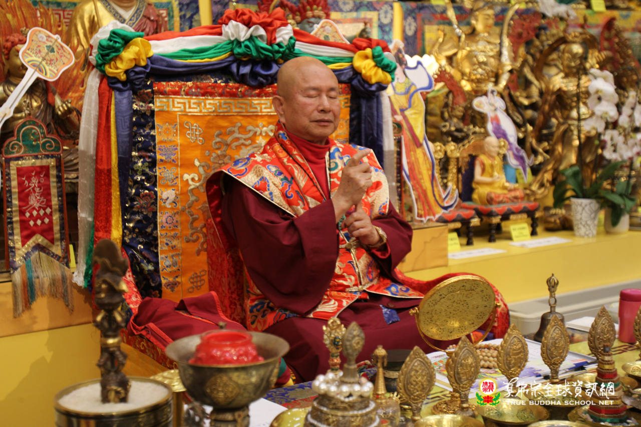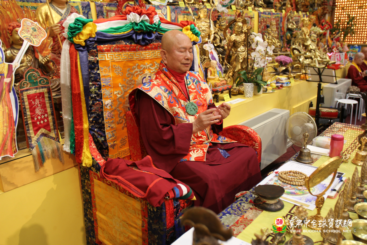聖尊精闢的法語開示後,雷藏寺唱誦組法師們帶領大眾唱誦阿彌陀佛聖號,然後,聖尊為求皈依的信眾賜受灌頂,加持大悲咒水,開光佛像。臨行前,聖尊還摩頂加持大眾。感恩根本上師慈悲將佛法的法流灌溉每一位眾生的心靈,讓我們能心領神會佛法的真實見!
