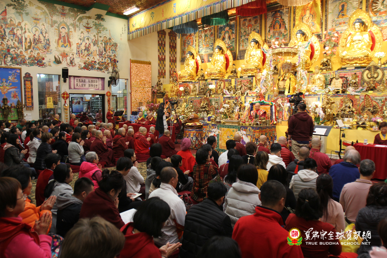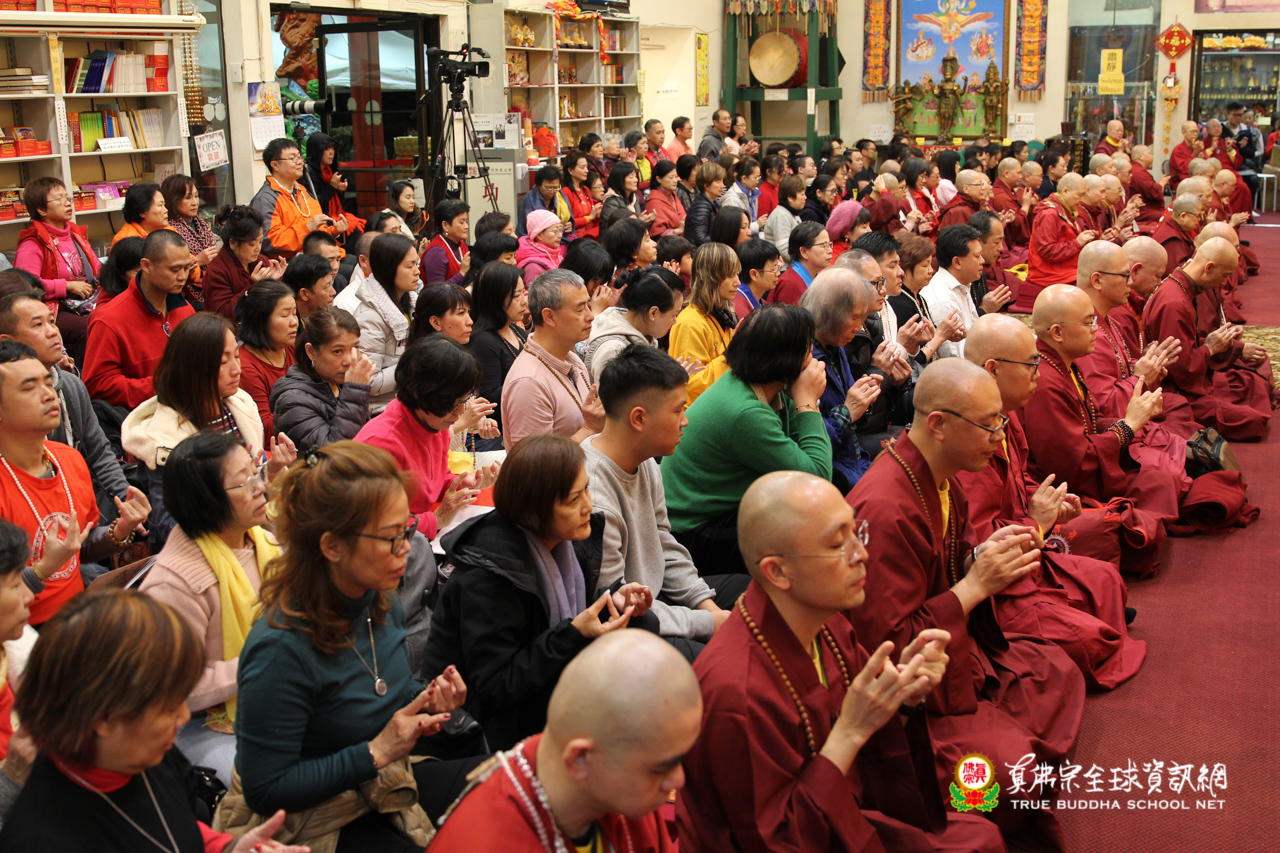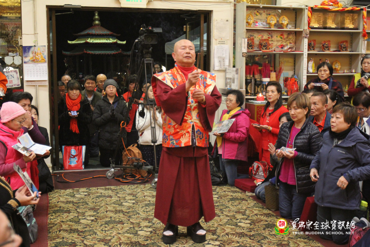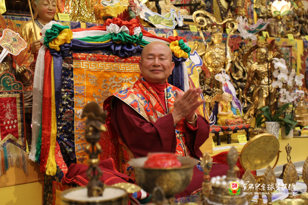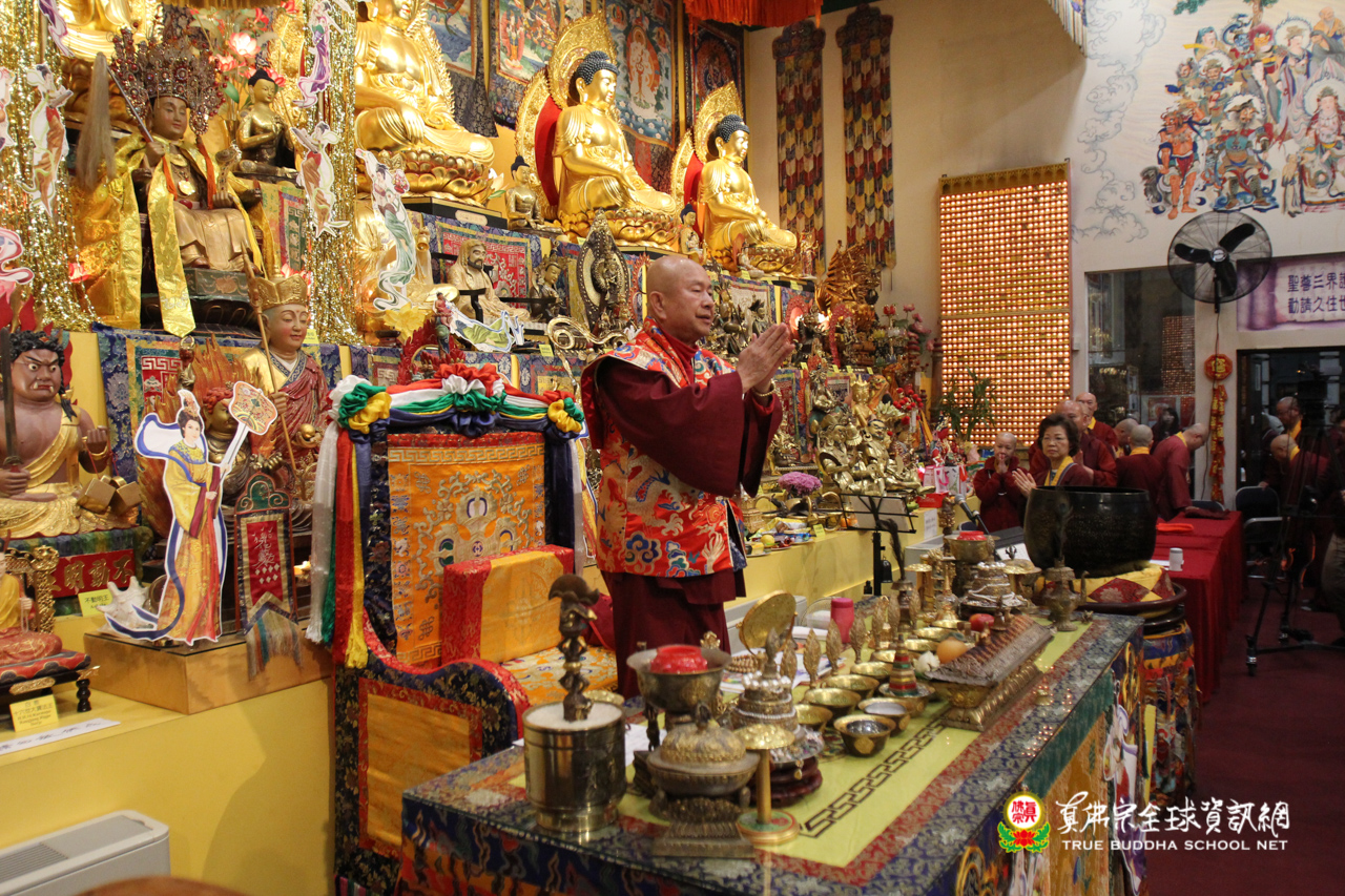 聖尊精闢的法語開示後,雷藏寺唱誦組法師們帶領大眾唱誦阿彌陀佛聖號,然後,聖尊為求皈依的信眾賜受灌頂,加持大悲咒水,開光佛像。臨行前,聖尊還摩頂加持大眾。感恩根本上師慈悲將佛法的法流灌溉每一位眾生的心靈,讓我們能心領神會佛法的真實見!