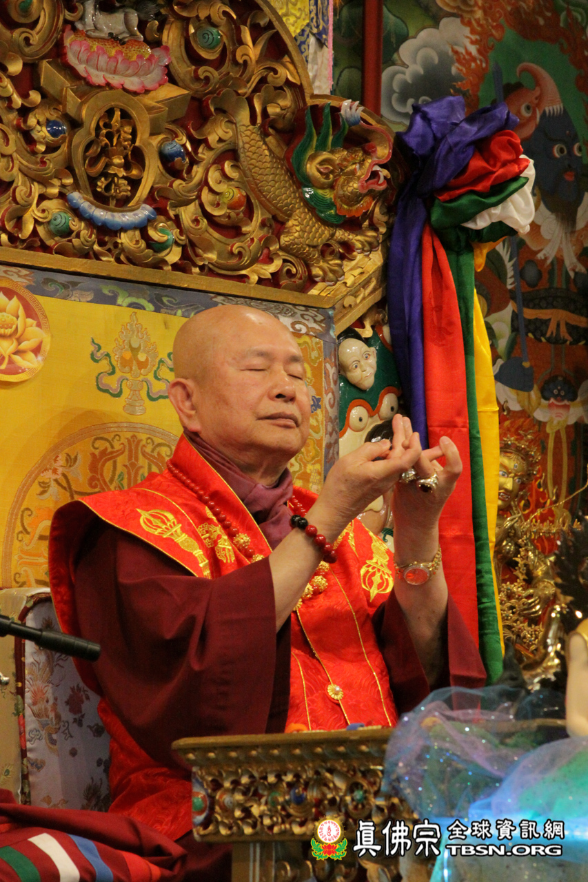 由於防疫方針,全球真佛弟子只能在網路上看到法王,「現在大家都可以看到我,師尊用眼睛一看,也看了好幾千萬的弟子,在聽師尊說法」,法王告訴大家,昨晚修法時和臨睡的時侯修法,看到阿彌陀佛、觀世音菩薩,另外,特別看到綠度母,「可見綠度母、除瘟疫度母、二十一度母來支持我們今天的護摩,所以綠度母經常都是幫助我們的」。