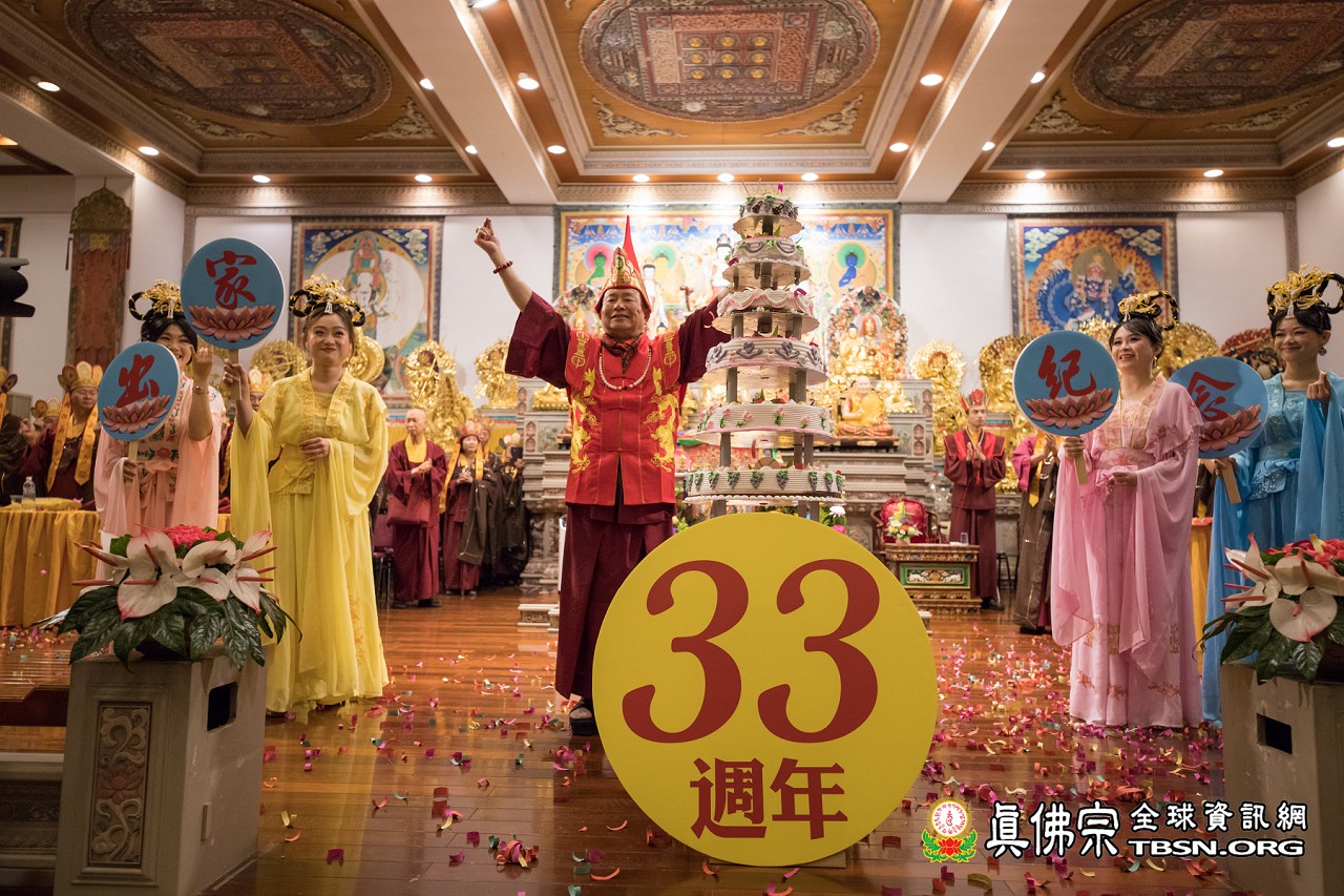 2019年03月16日,台灣雷藏寺恭請當代法王蓮生活佛盧師尊主壇南摩長壽三尊護摩大法會。當日,農曆二月初十,是法王出家33週年的紀念日,因此,台灣雷藏寺特別籌辦「慶祝聖尊蓮生活佛出家33週年」的活動。在莊嚴的請佛住世聲中,20位法師上呈15米長的「請佛住世」連署布條,非常壯觀。再過幾天,也將欣逢師母蓮香上師的生日,因此,所有與會弟子一起為法王和師母唱「出家生日快樂歌」,恭祝法王出家快樂、長壽自在,師母生日快樂、美麗健康。眾等皆感恩法王出家,大轉法輪,利樂有情,廣度人天,不捨眾生的誓願。