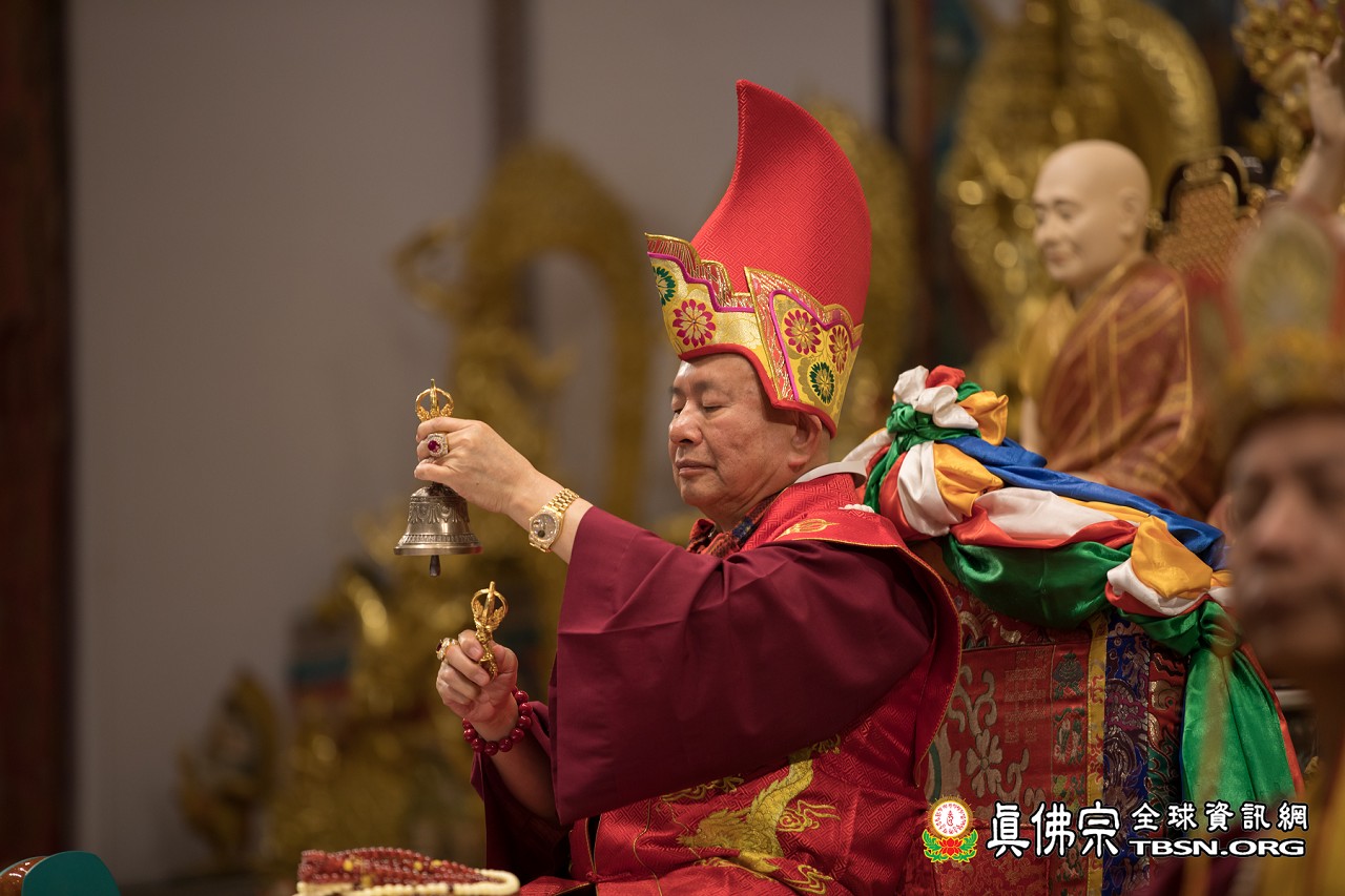 法會主尊是密教的長壽三尊,就是長壽佛、尊勝佛母、白度母。長壽佛就是阿彌陀佛、無量壽佛的化身,尊勝佛母就是釋迦牟尼佛無上頂光明的化身,白度母是觀世音菩薩的悲淚所化現,一滴化為綠度母,一滴化為白度母。