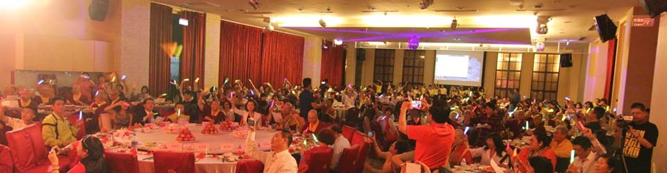 為慶祝「師尊仙壽佛誕」 2014年5月1日晚上蓮生法王盧勝彥法王、蓮香師母與台北〈法明同修會〉弟子3百多人共聚一堂。