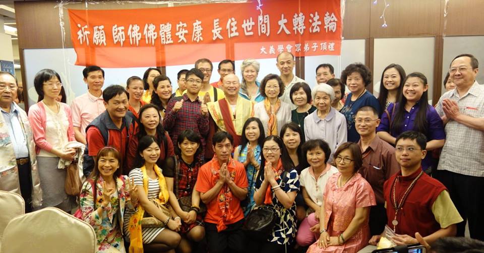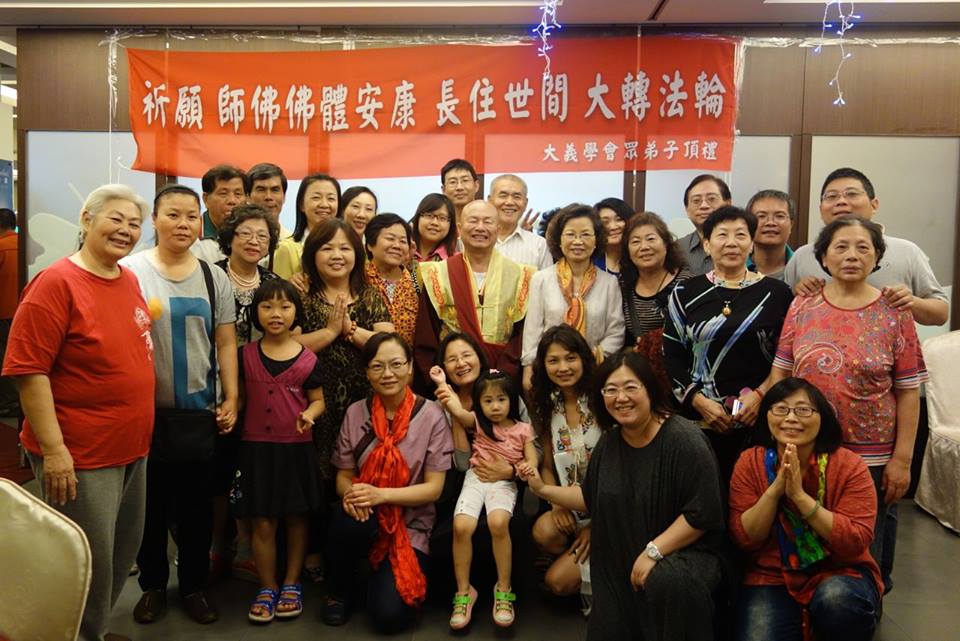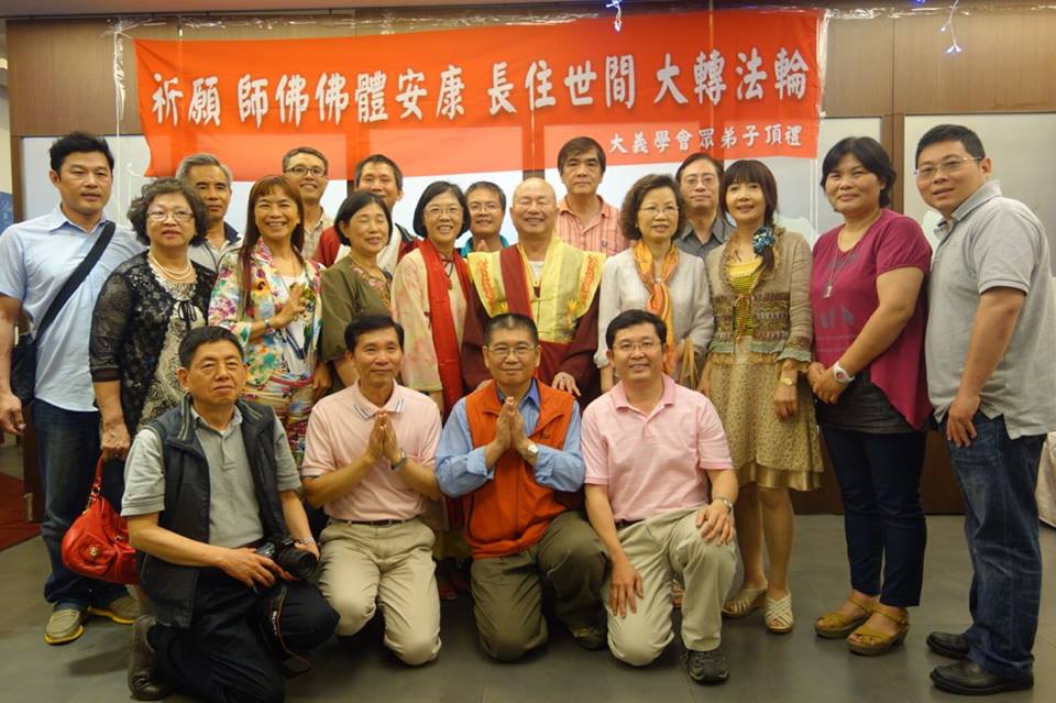 2014年4月13日蓮生活佛 盧勝彥師尊、蓮香師母與〈大義學會〉林立仁講師、廖麗瑩師姐、大義學會眾理事、會員歡喜聚餐,在場七、八十位弟子並為師尊慶生,歡唱生日快樂歌,請佛住世。