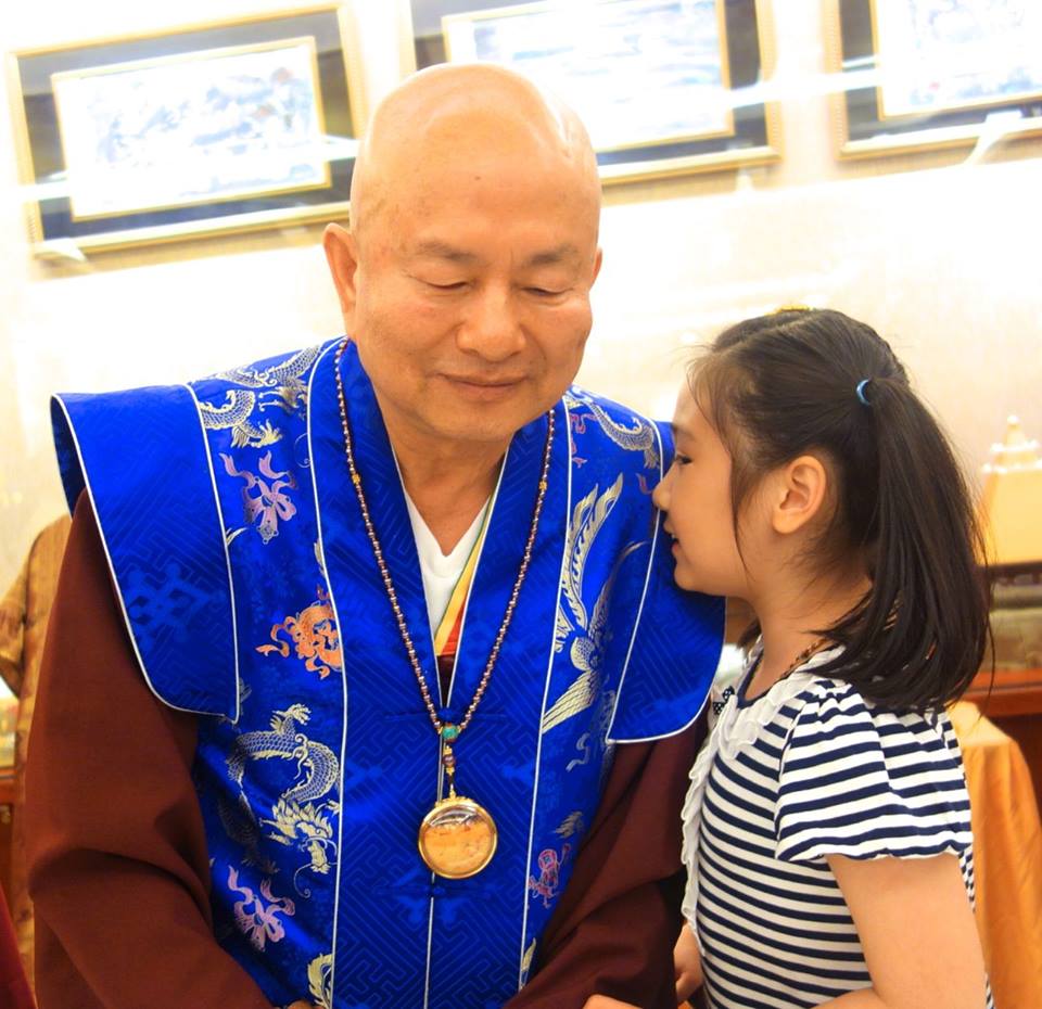 蓮生活佛 盧勝彥師尊在2014年3月29日「不動明王護摩法會」前簽書時,來了一位可愛甜美如公主般的小美女,當場並為師尊獻唱兒歌。