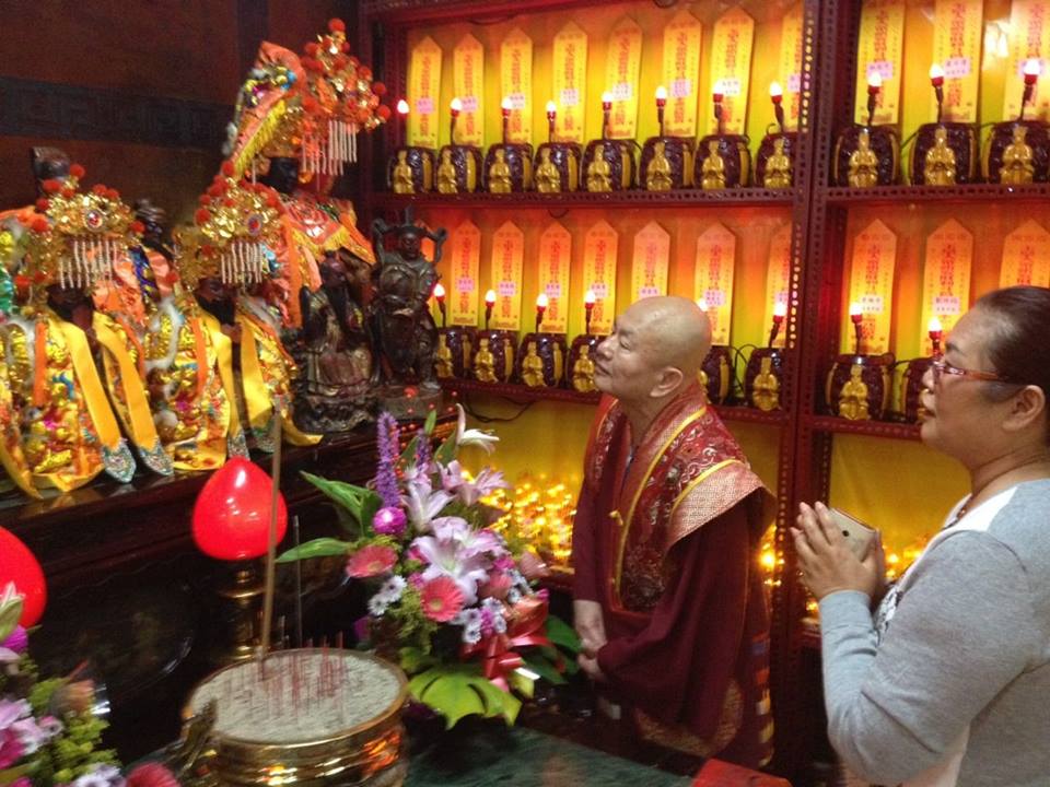 2014年3月20日蓮生法王 盧勝彥佛駕台中「玉皇宮」上香禮拜。