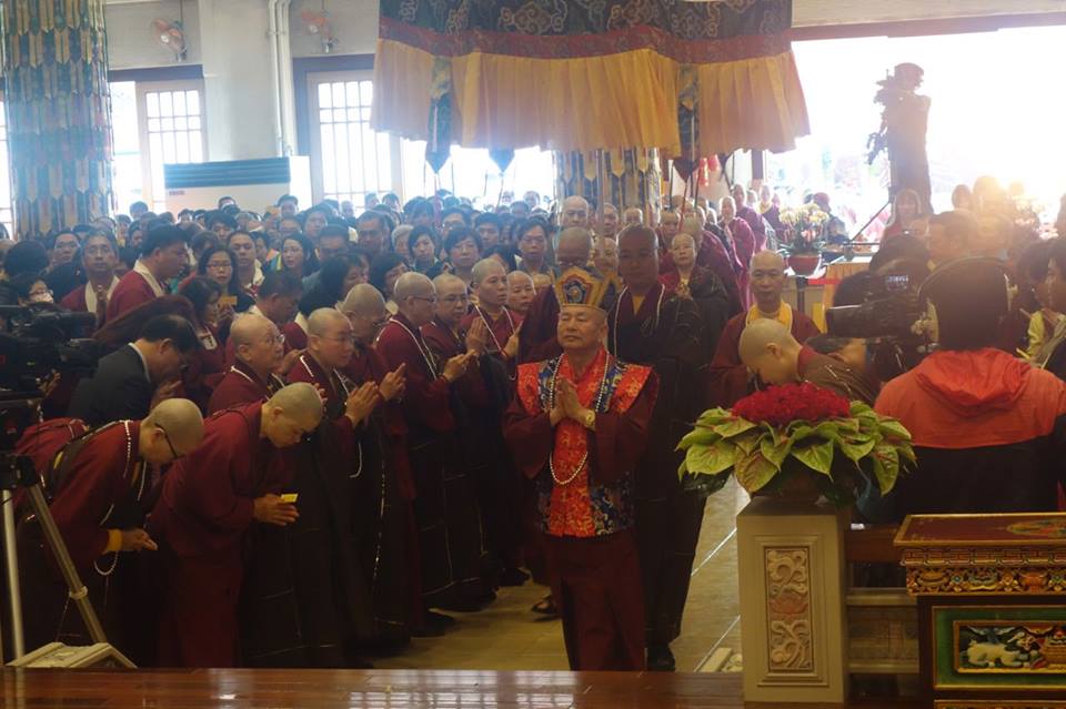 法會開始,鐘鼓齊鳴,恭迎蓮生活佛 盧勝彥法王主持「大威德金剛護摩法會」,大轉法輪,廣度眾生