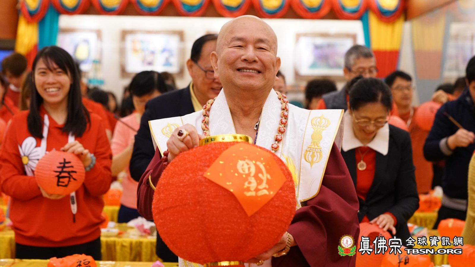蓮生活佛亦題了春條,寫下「佛光注照」四字賜福大眾,並接受電視媒體的聯合訪談。師尊先解釋題此四字的涵義,正是希望佛光注照整個台灣,有佛光注照,讓台灣能得到祥和,跟一切的平安。而今天要發放的護牌,是由「大力金剛」作為主尊,大力金剛祂有力量能消災解厄,因此這個護牌的作用,正是息滅所有的災難,解掉本身的厄運。
