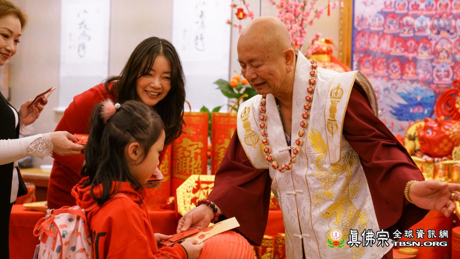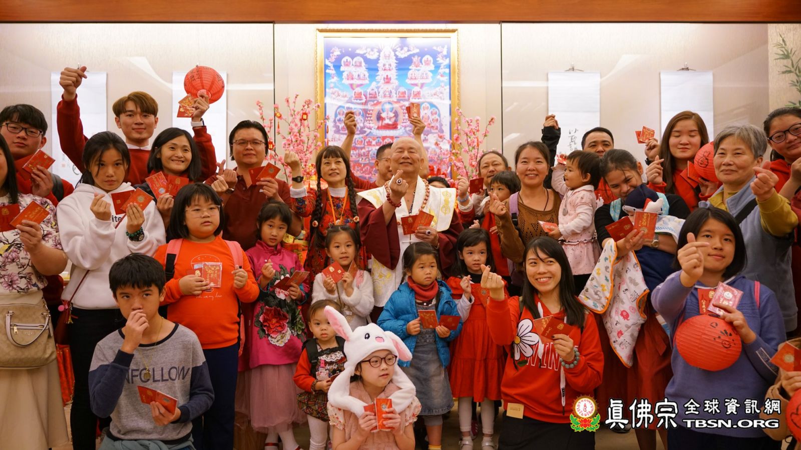 最後,蓮生法王應記者之請為台灣祈福:希望這個豬年,國家整個命運,諸事如意,逢凶化吉,人民和祥,經濟發展;採訪於此告一段落。媒體聯訪結束後,師佛開始發放「大力金剛開運護佑祈福護牌」和「豬年開運吉祥紅包錢母」,領取到護牌和錢母的弟子各個都歡喜鼓舞,感恩頂戴。願所有善信在新年第一天皆獲無上法王和諸佛菩薩的大加持,悉皆滿載而歸,健康平安一整年!