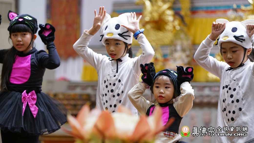 為了讓晚宴精采的節目順利進行,有三位主持人林素任助教、豆豆、和Victor同時,或接力輪流主持節目,讓場面活潑生動。從「上菜秀」 揭開序募,表演項目包括天音雅樂合唱團所唱的「祝福」與「讓自己消失掉」、小短劇、小寶貝的舞蹈表演「學貓叫」、Victor和雙蓮師姐等表演的「張三的歌」、及陽光舞供團的排舞。除此之外,還有現場遊戲節目和摸彩,讓在座的觀衆弟子們一起參與,大家沉浸在歡喜的新年氣氛。