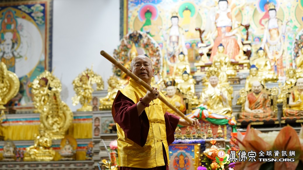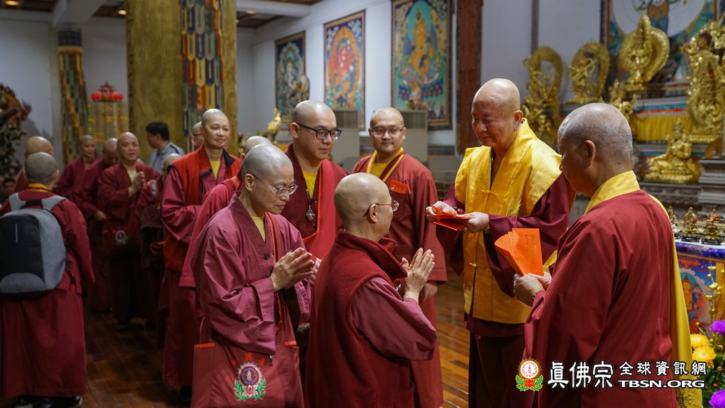 整個活動最高潮是由師尊敲「吉祥鼓」與打了一套「金剛棍」加持與會弟子。隨後,師尊親自發送紅包給與會的每一個弟子,人人幸福滿溢。相信在師尊的賜福下,紅豬年將會是諸事大吉,福慧增長豐收的一年!