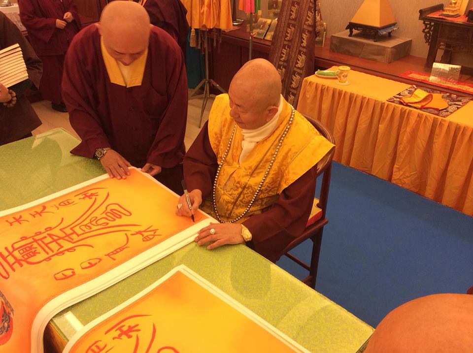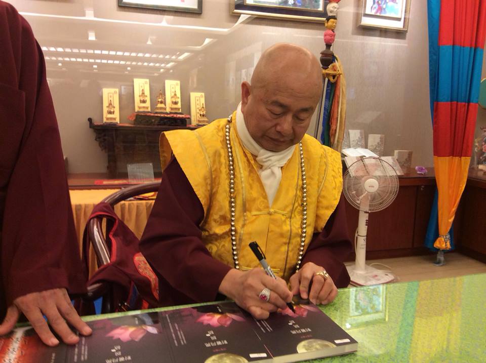 蓮生活佛 盧勝彥法王簽名加持情景。
