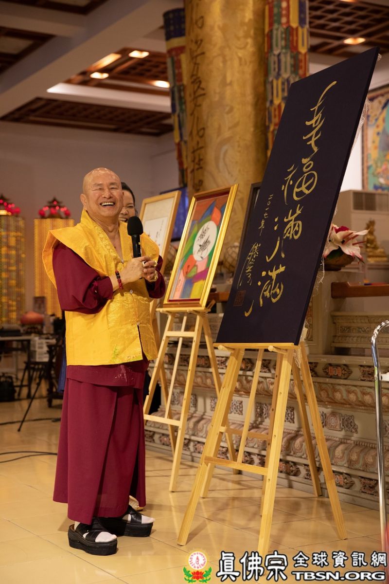 法王蓮生活佛再度於現場公開揮灑巨幅畫作,這是繼「幸福滿滿」(創作於2012年3月11日,尺寸:360cm x 150cm)、「天地日月九富貴魚」(創作於2013年3月3日,尺寸:410cm x 165cm)、「仙子」(創作於2014年2月23日,尺寸:480cm x 180cm)、「神秘的香巴拉 一帆風順」(創作於2015年12月6日,尺寸:450cm x 180cm)、「天降富貴 隨心所悅」(創作於2016年4月24日,尺寸:450cm x 180cm)、「一帆風順 滿載而歸」(創作於2017年2月26日,尺寸:450cm x 180cm)、「天燈」(創作於2018年2月4日,尺寸:500 cm x 200cm)之後的第八幅畫作,取名為:「天天有餘」,尺寸約為500 cm x 200cm。