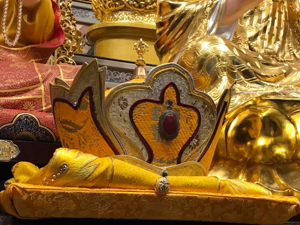 接著,再談「大力金剛」頂飾為阿彌陀佛,應立在「唐卡」的上方,右方瑤池金母,左方笑面鬼王。