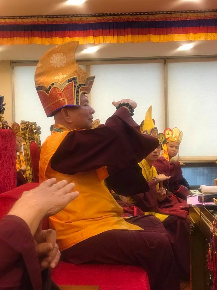 最後,在師尊和地藏王菩薩的光明注照之下,在大眾齊唱大白傘蓋佛母咒音聲中,眾佛子一一接受灌頂,法會圓滿吉祥!