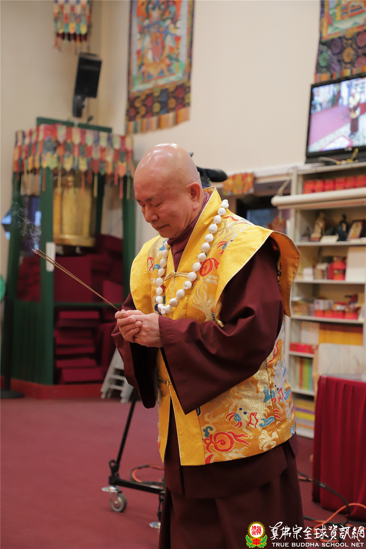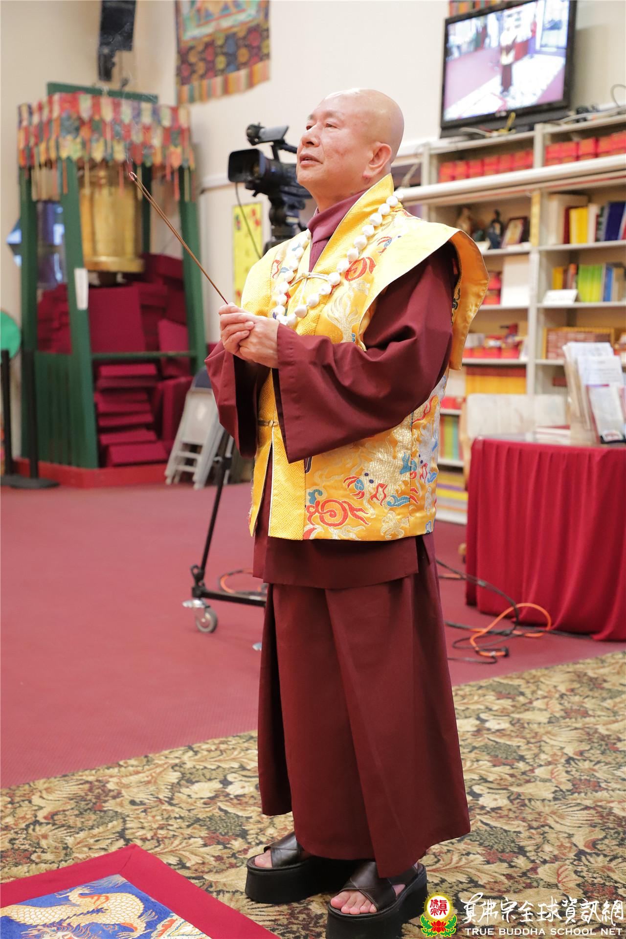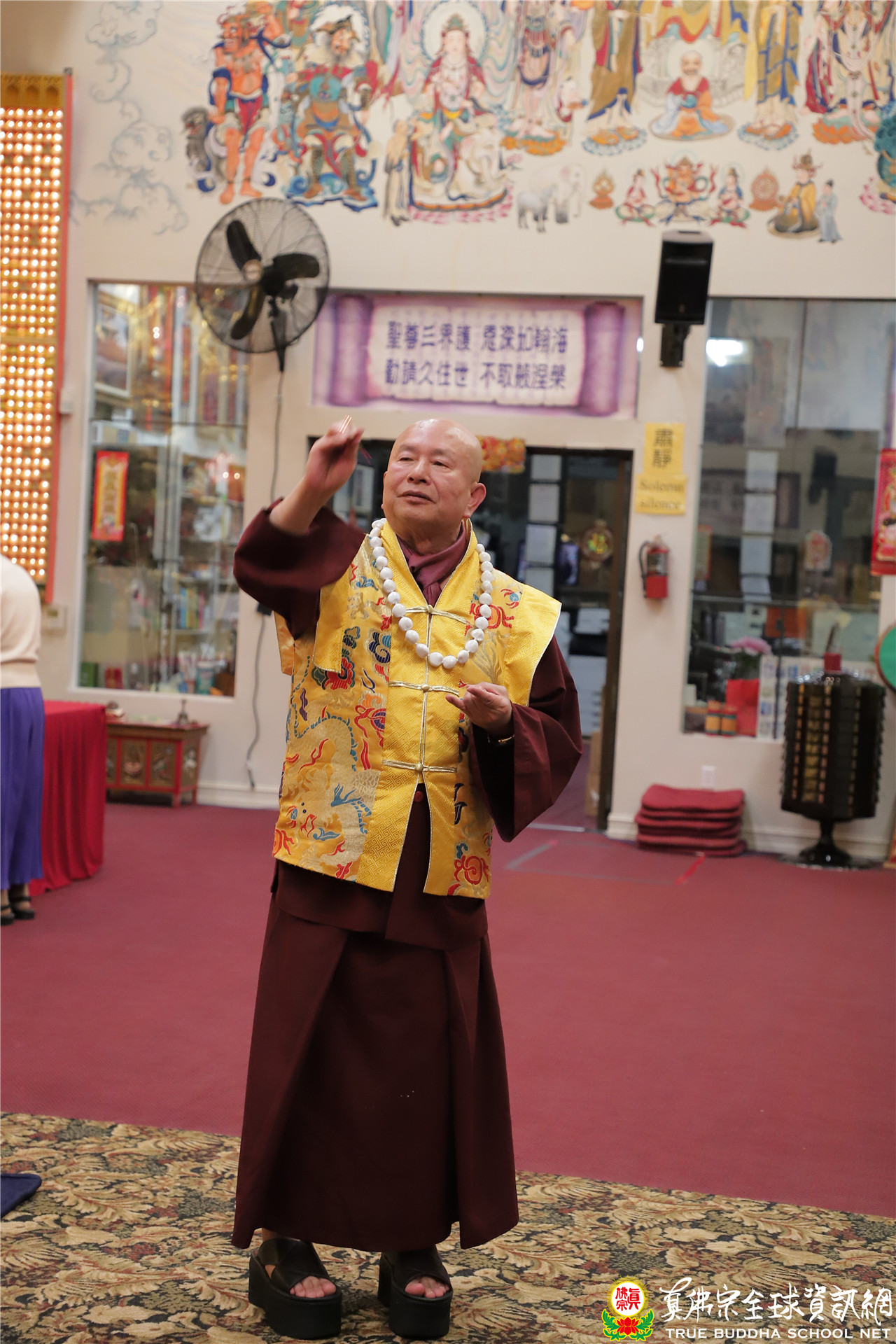 4月25日,百花開放微寒的春天,晚上八點天光漸暗,西雅圖雷藏寺卻燈火通明,因蓮生活佛師尊及師母的蒞臨而輝煌起來,雖然居家防疫的禁令同門不能入寺內,但是大家也開始習慣各自在家上網相聚,透過網路來修法和聆聽開示。