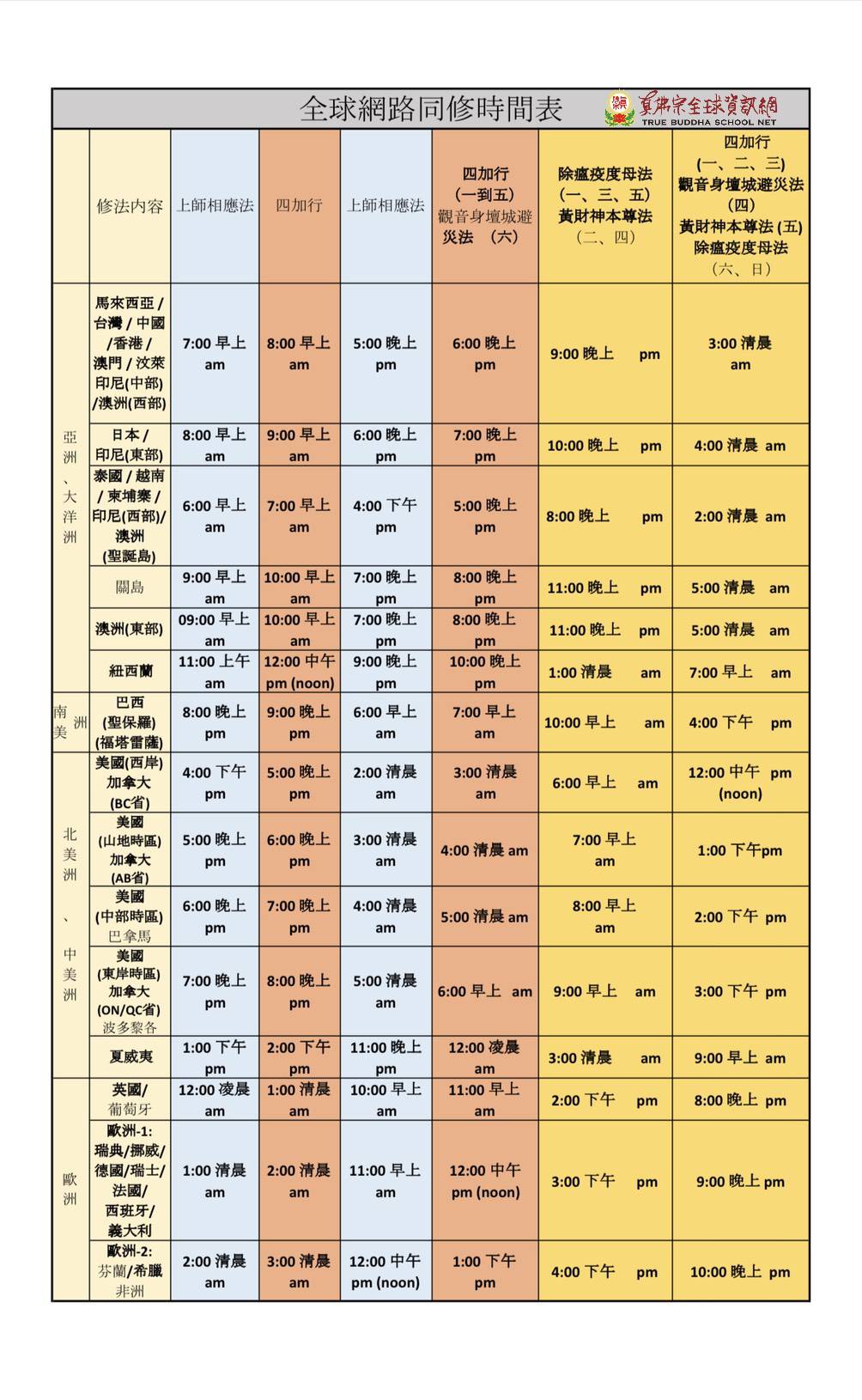 我們附上真佛宗全球網路同修最新時間表,包含【觀音身壇城避災法】與【黃財神】法,期望大家同修同證!