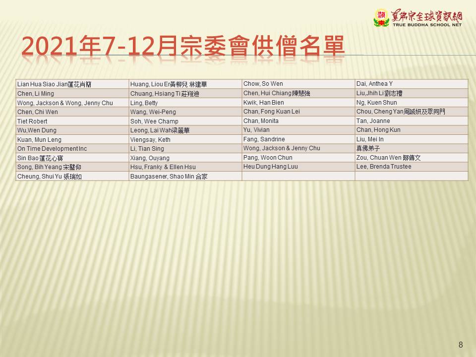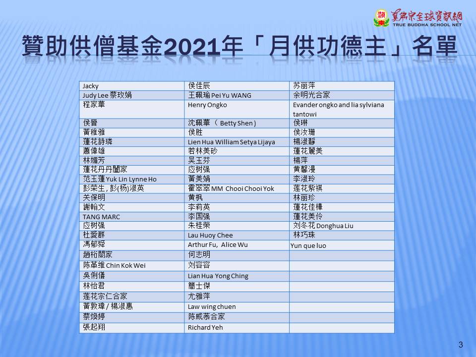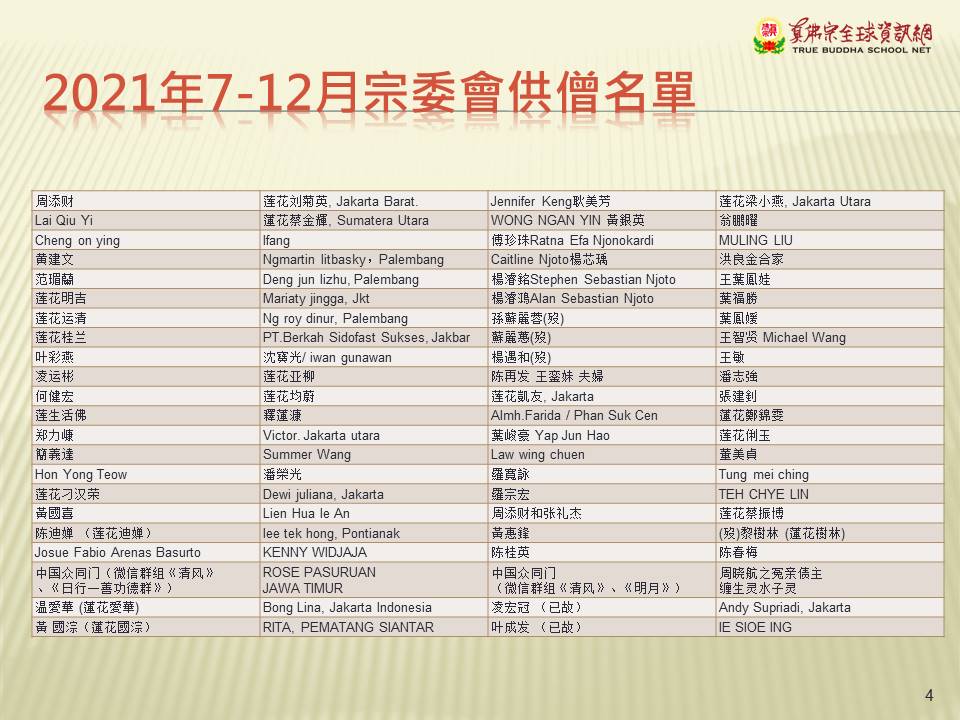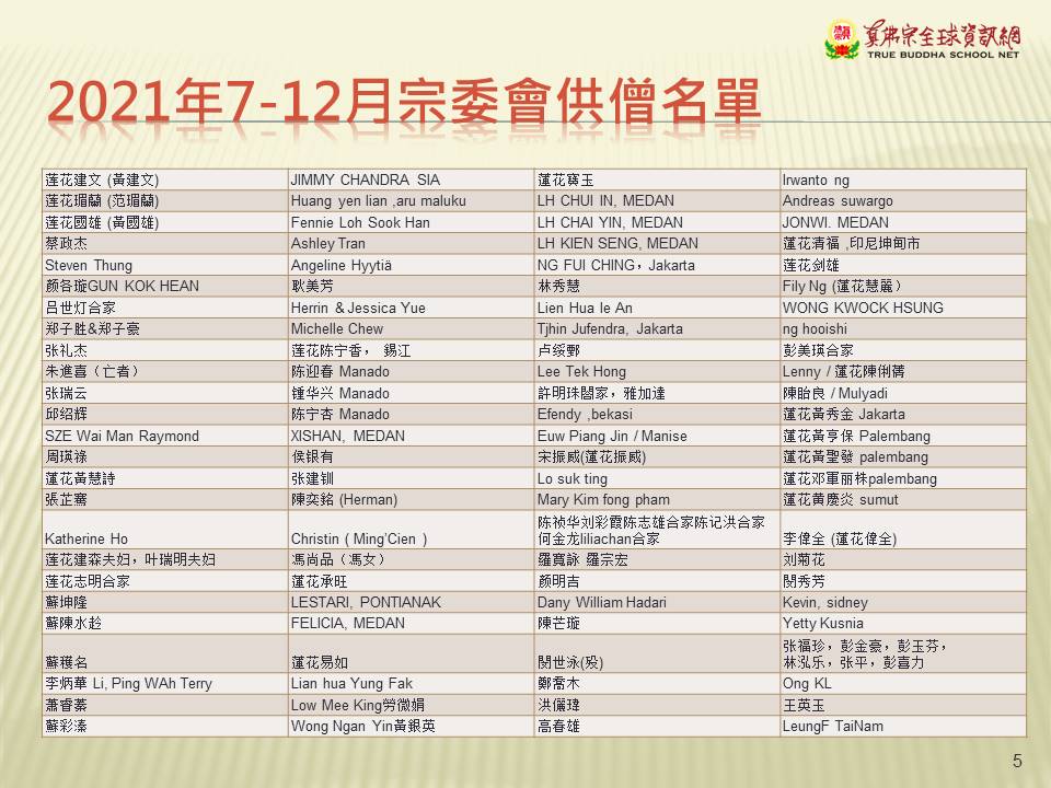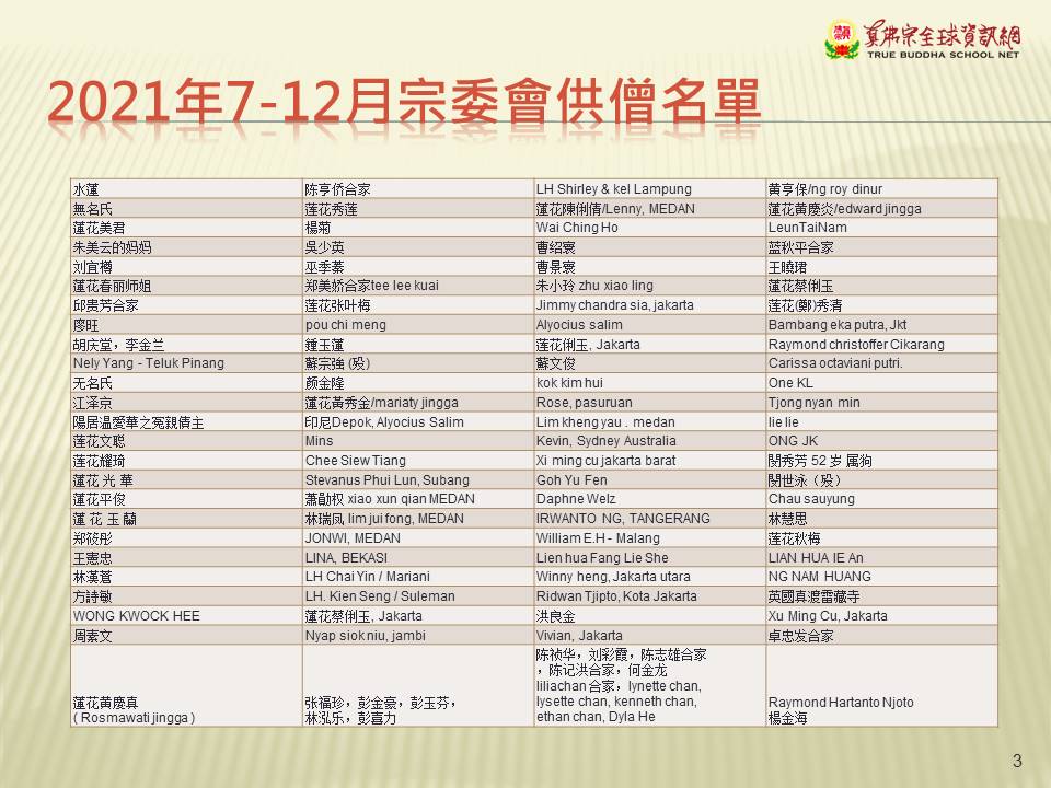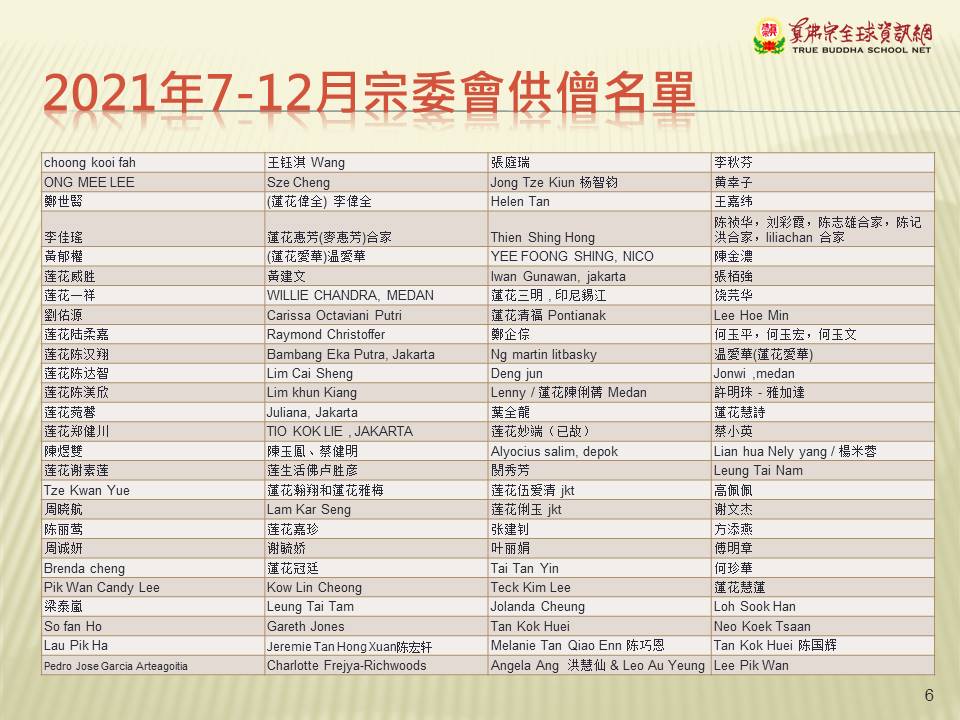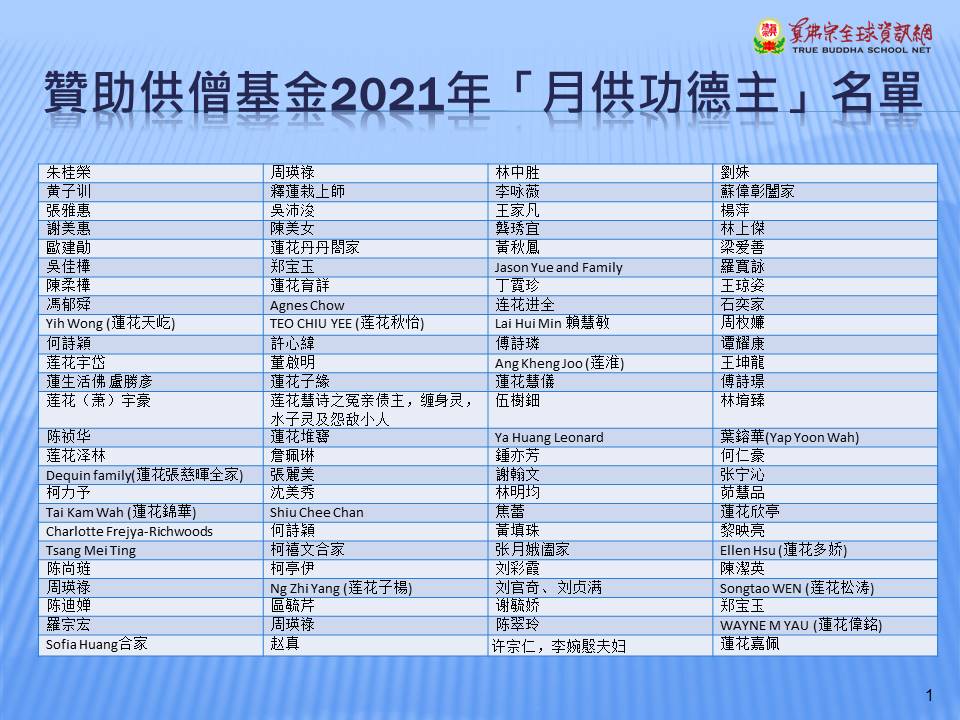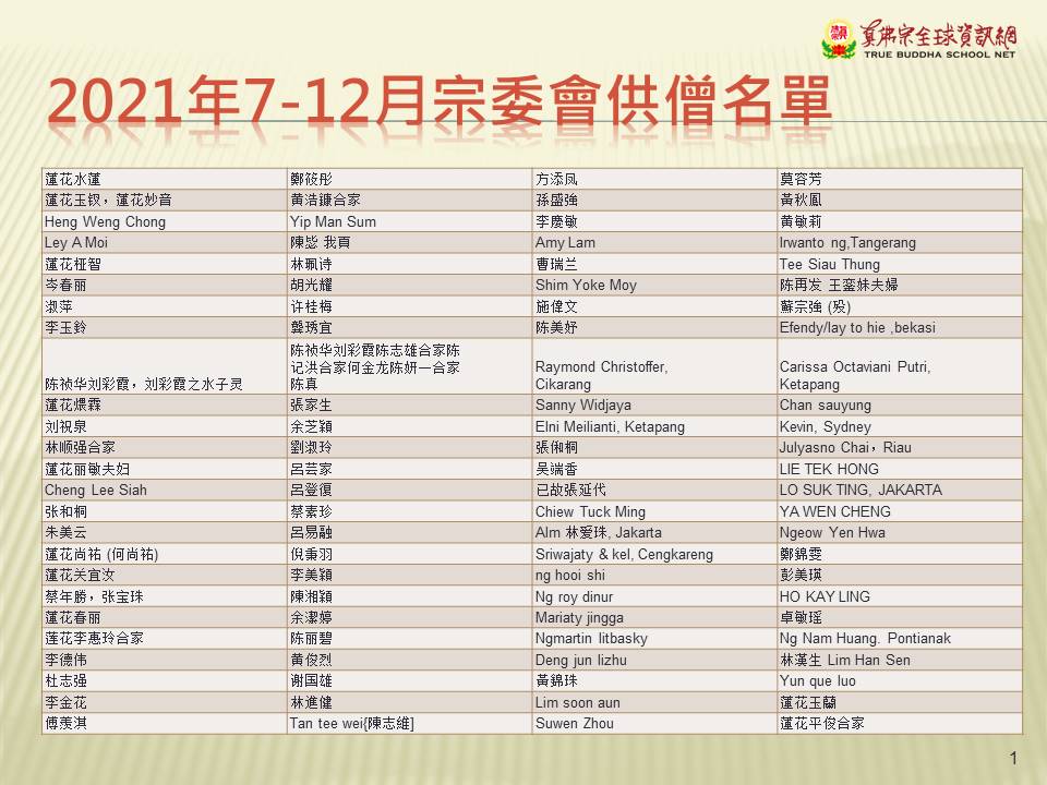 2021年7月至12月供僧功德主及2021年月供供僧功德主名單
