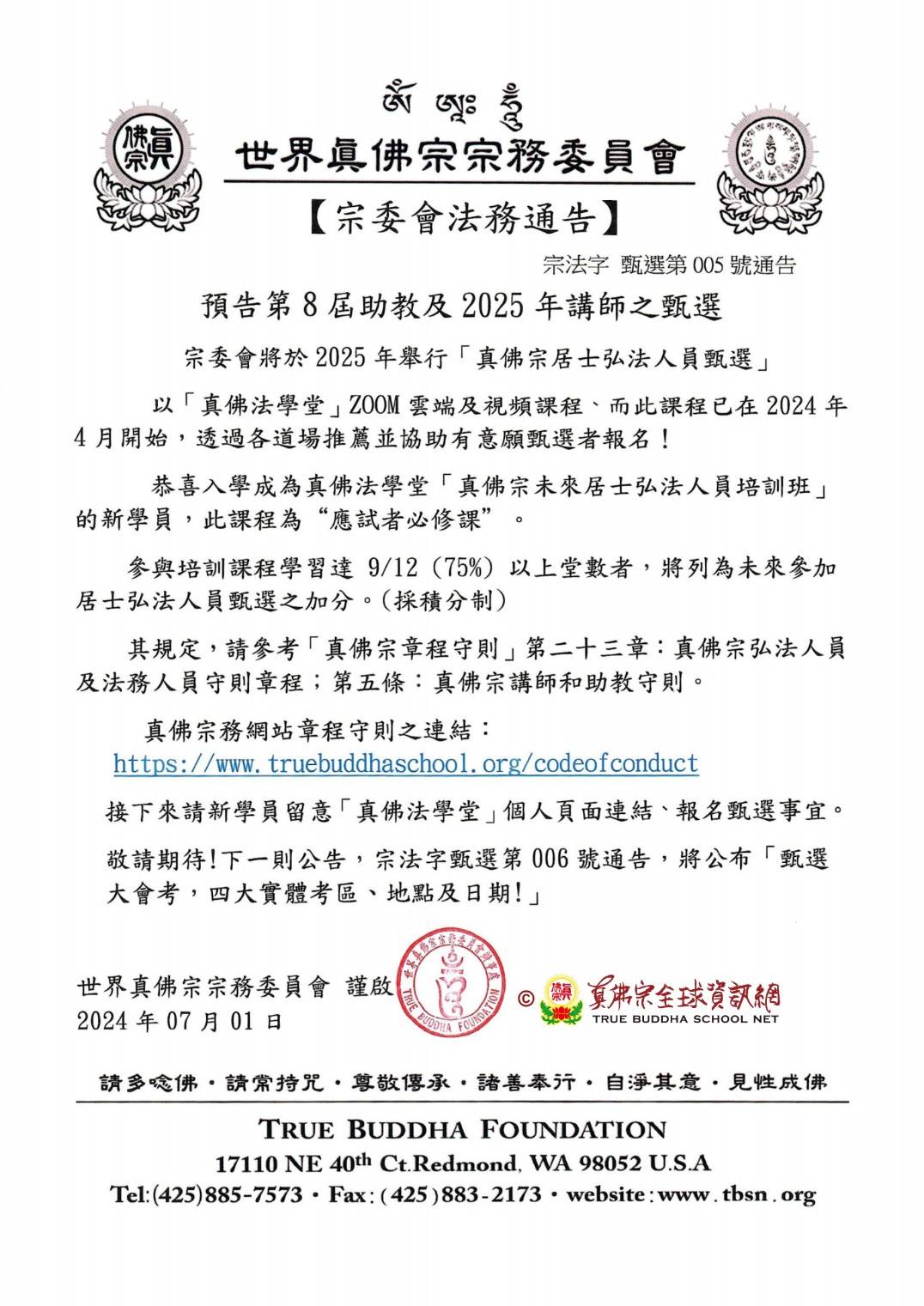 宗委會將於2025年舉行「真佛宗居士弘法人員甄選」