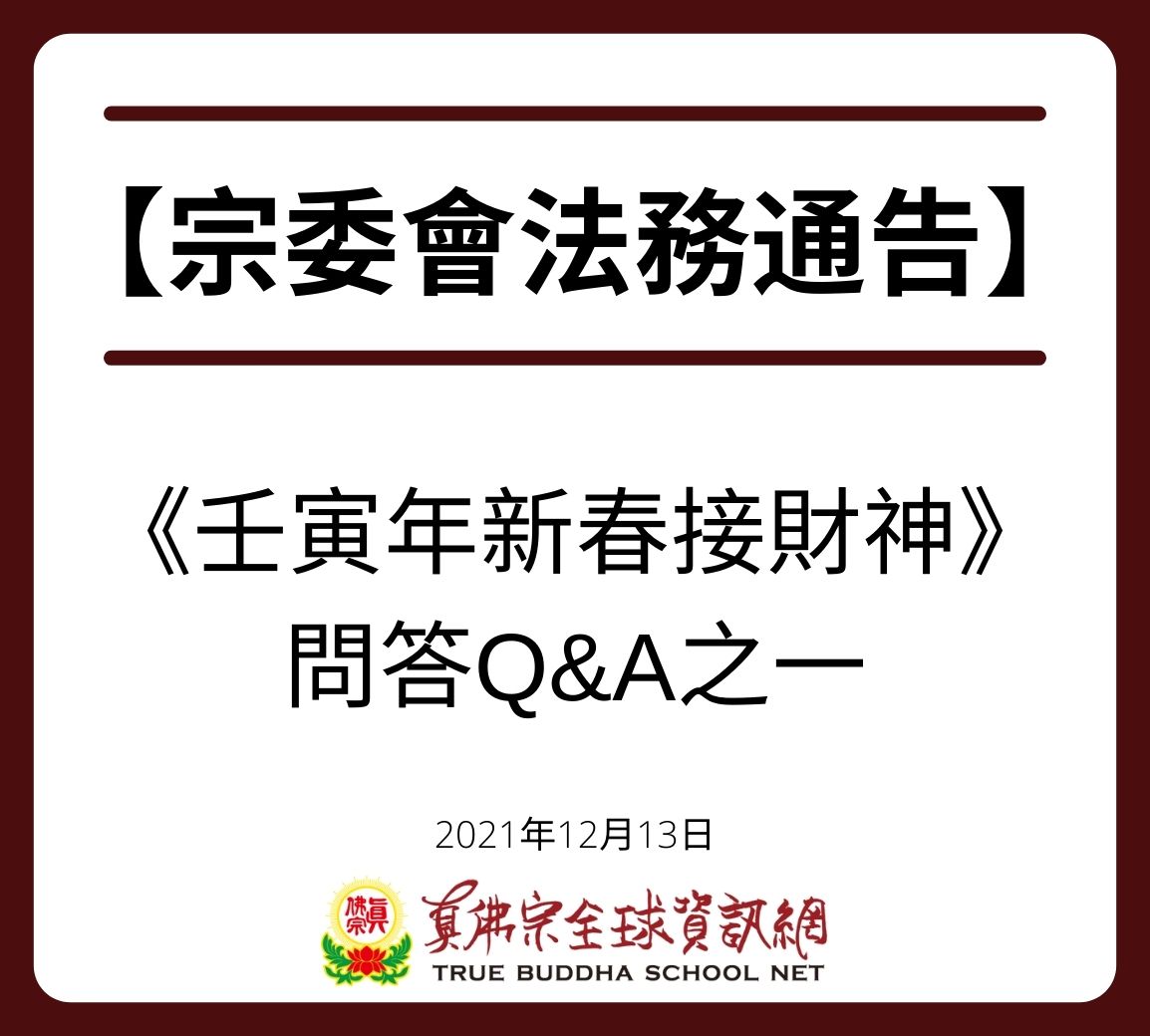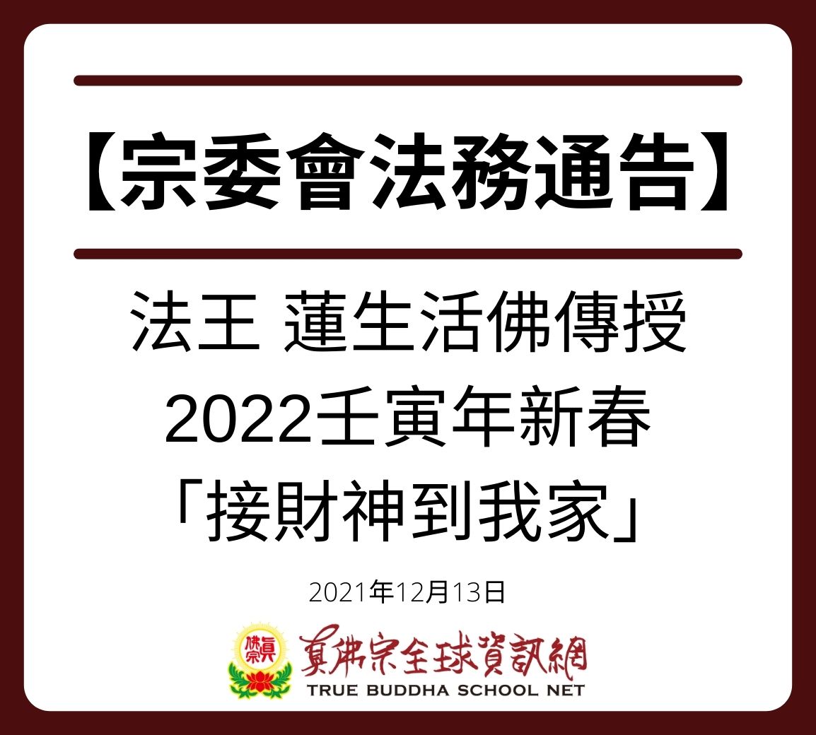 宗委會法務通告 2022壬寅年新春 接財神到我家